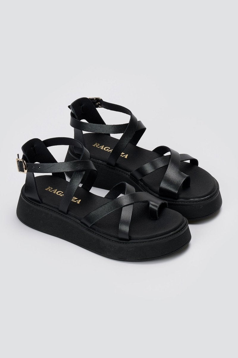 Leather flatform sandals with crossover straps, toe ring and ankle strap. Ragazza Dryflex comfort ensures breathability, shock absorption and all day freshness—crafted in Greece for modern women.