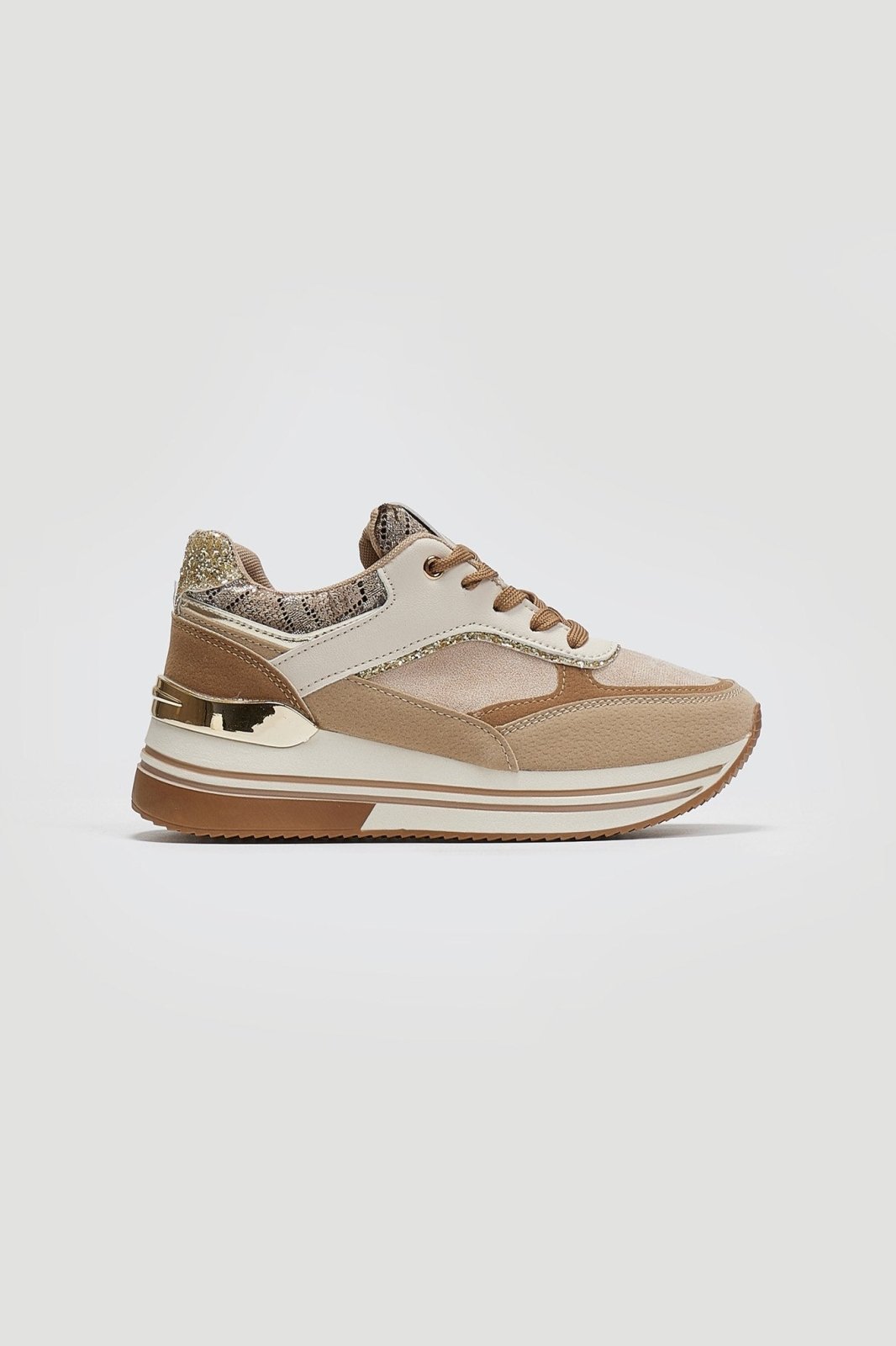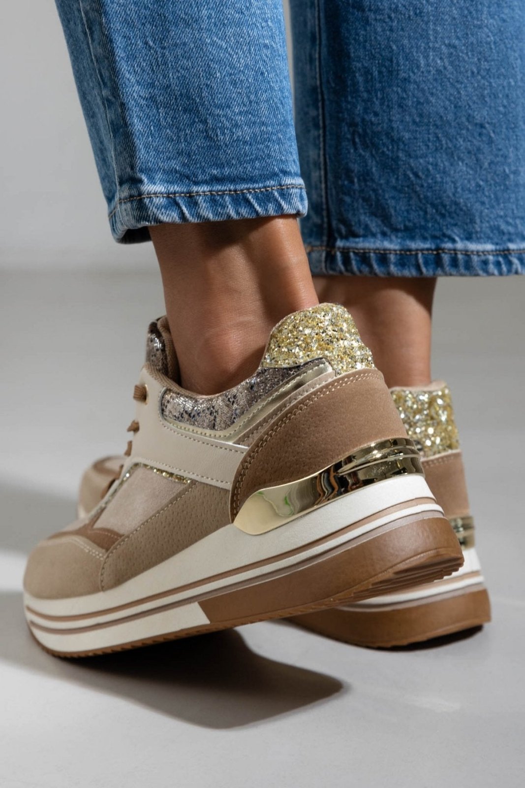 Flatform sneakers ERYNN. Μεταλλική λεπτομέρεια στο πίσω μέρος. Συνδυάζουν τεχνόδερμα και suede. Λεπτομέρειες με glitter. Σόλα ψηλή με ρίγες.
