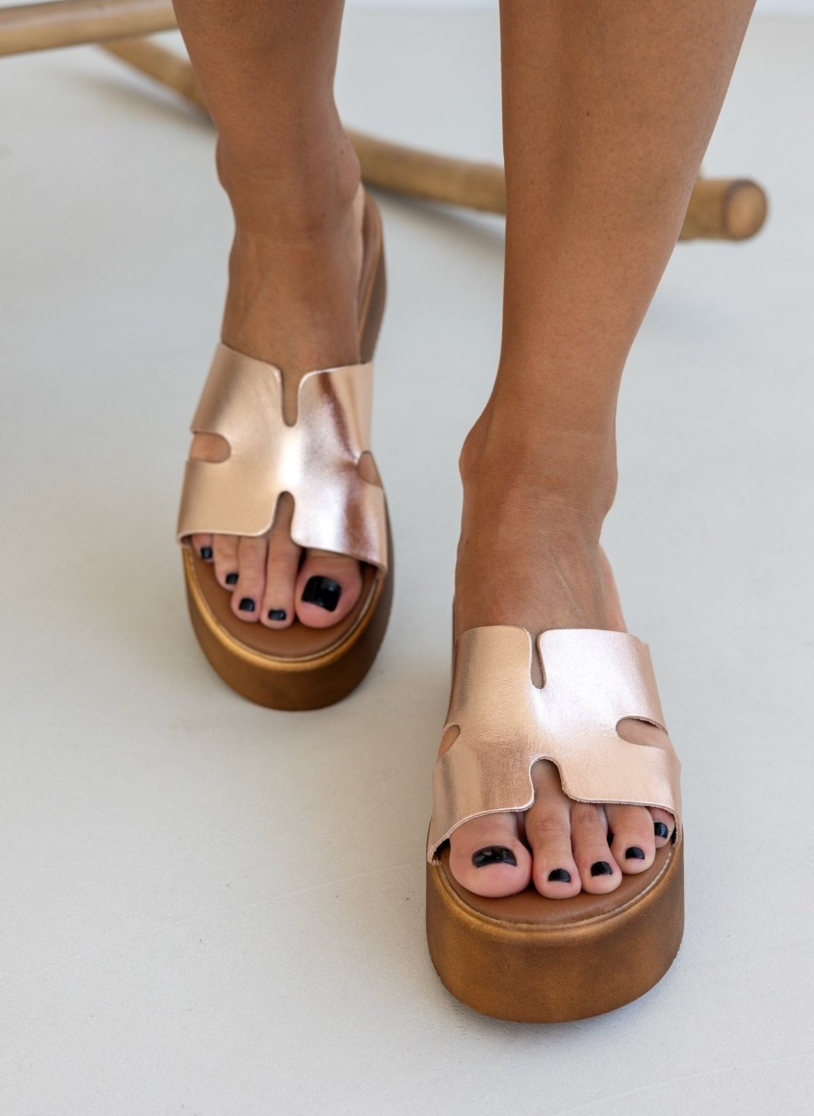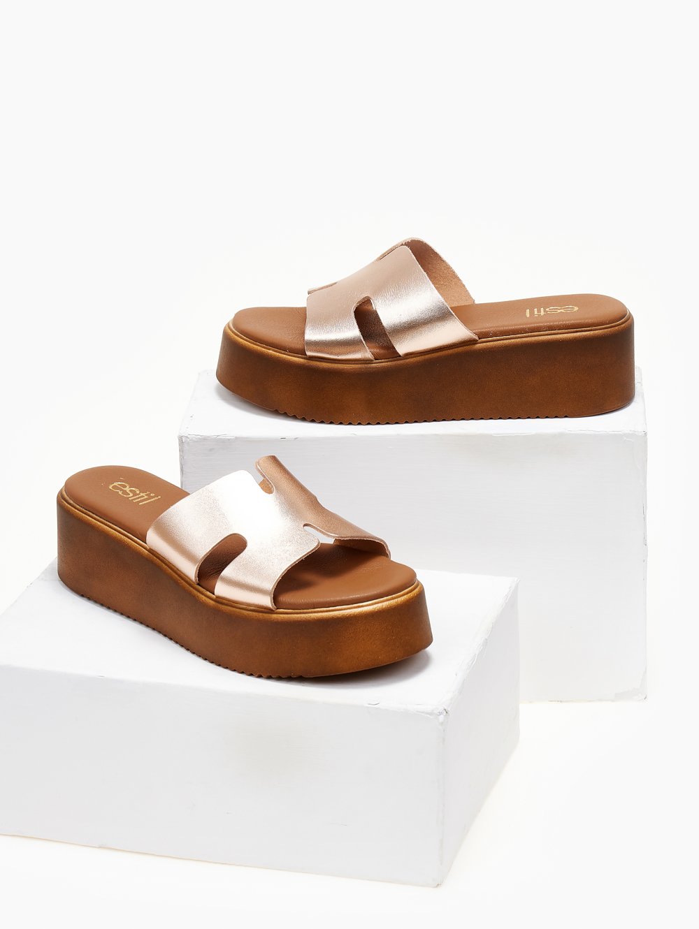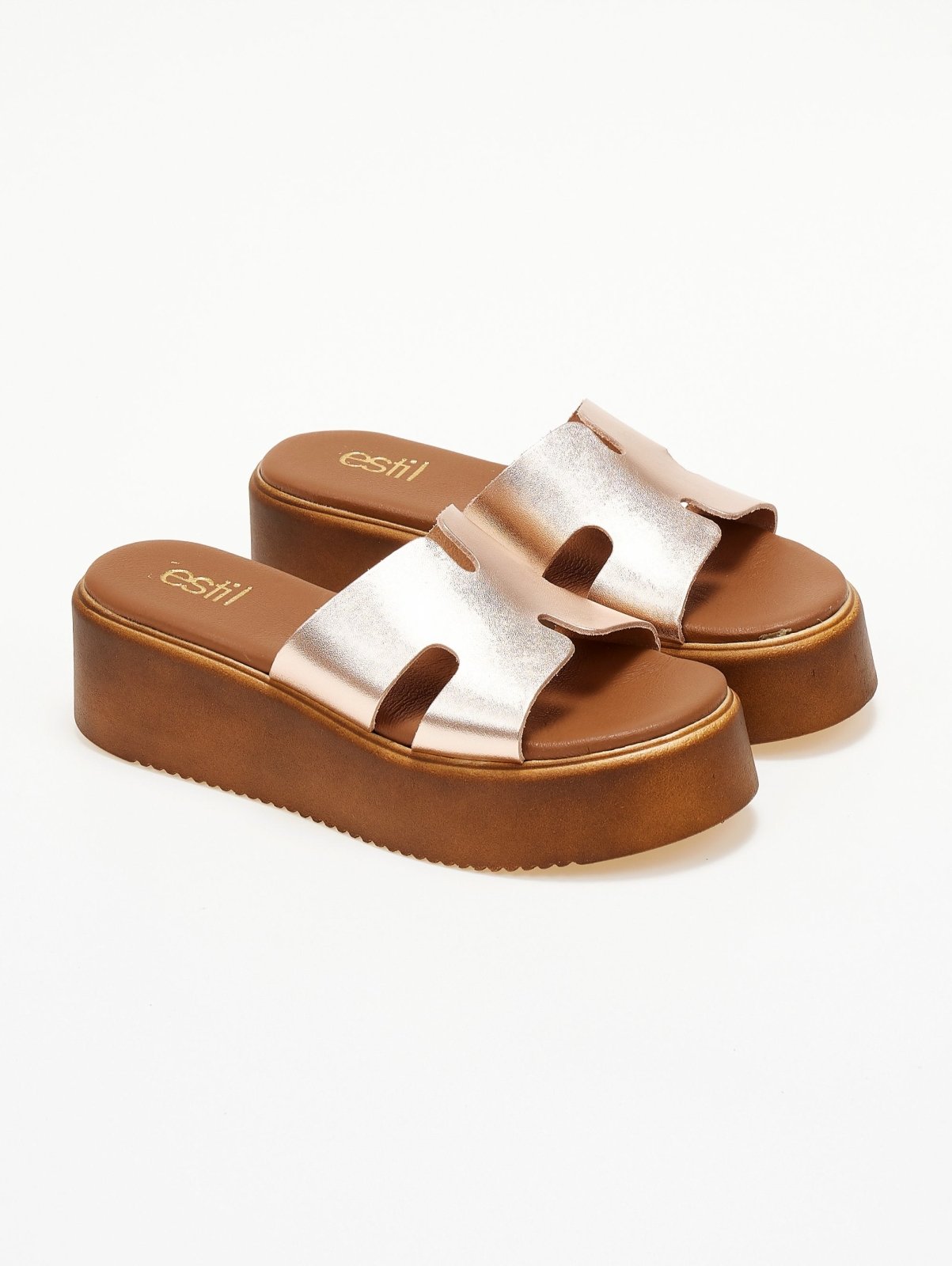 Flatforms δερμάτινα σανδάλια με ανοίγματα Estil - Χαλκός