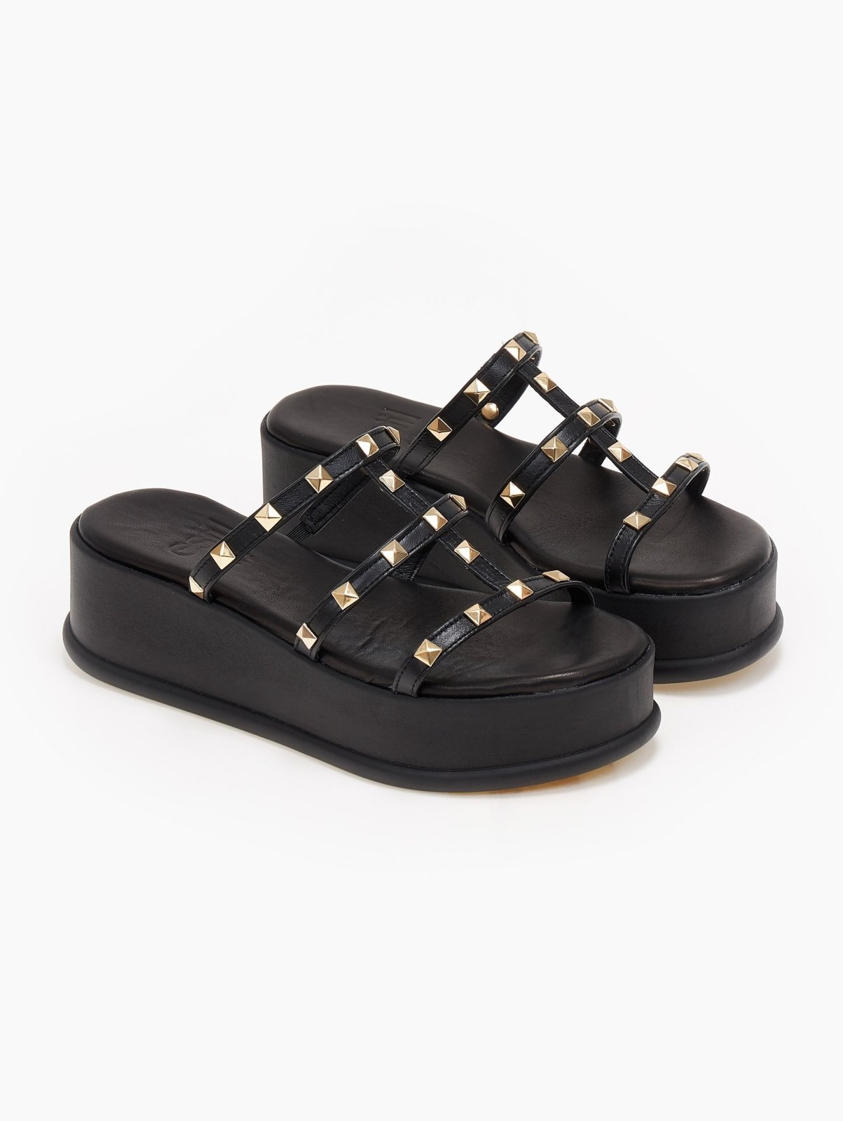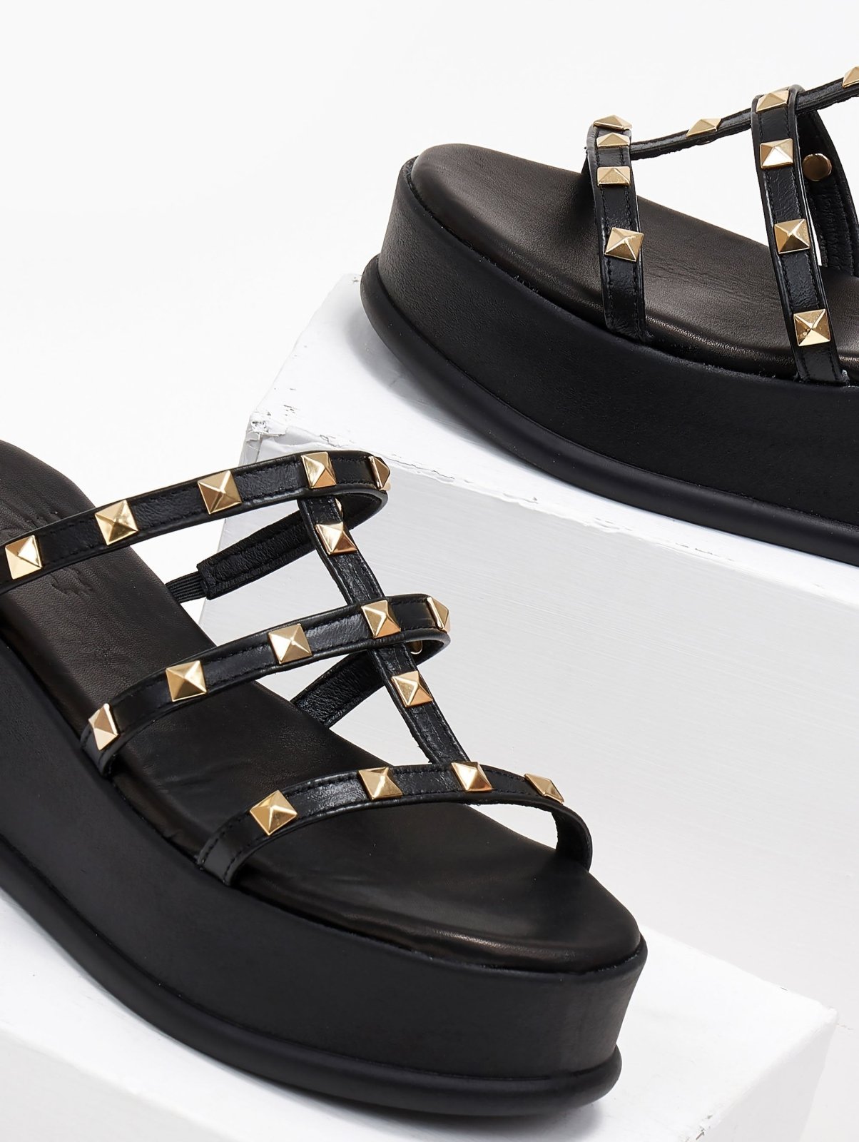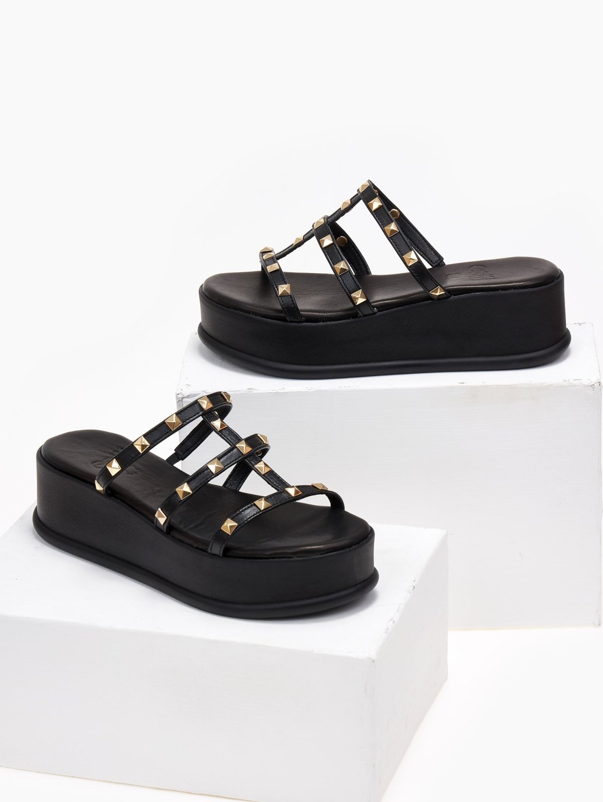 Δερμάτινα flatforms estil. Έχουν λεπτά λουράκια με τρουκς. Ανοιχτή φτέρνα. Δερμάτινος πάτος. Ελληνικής κατασκευής.