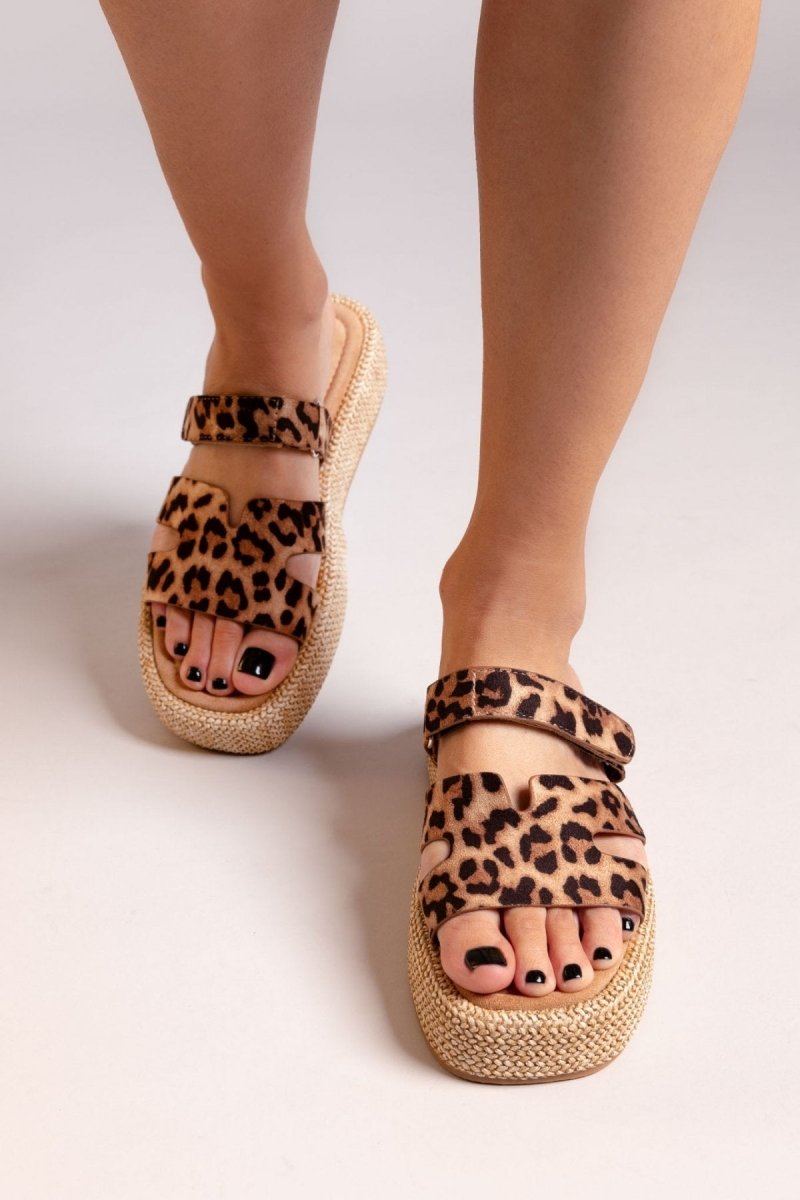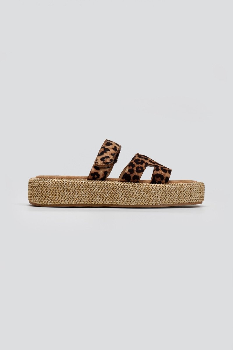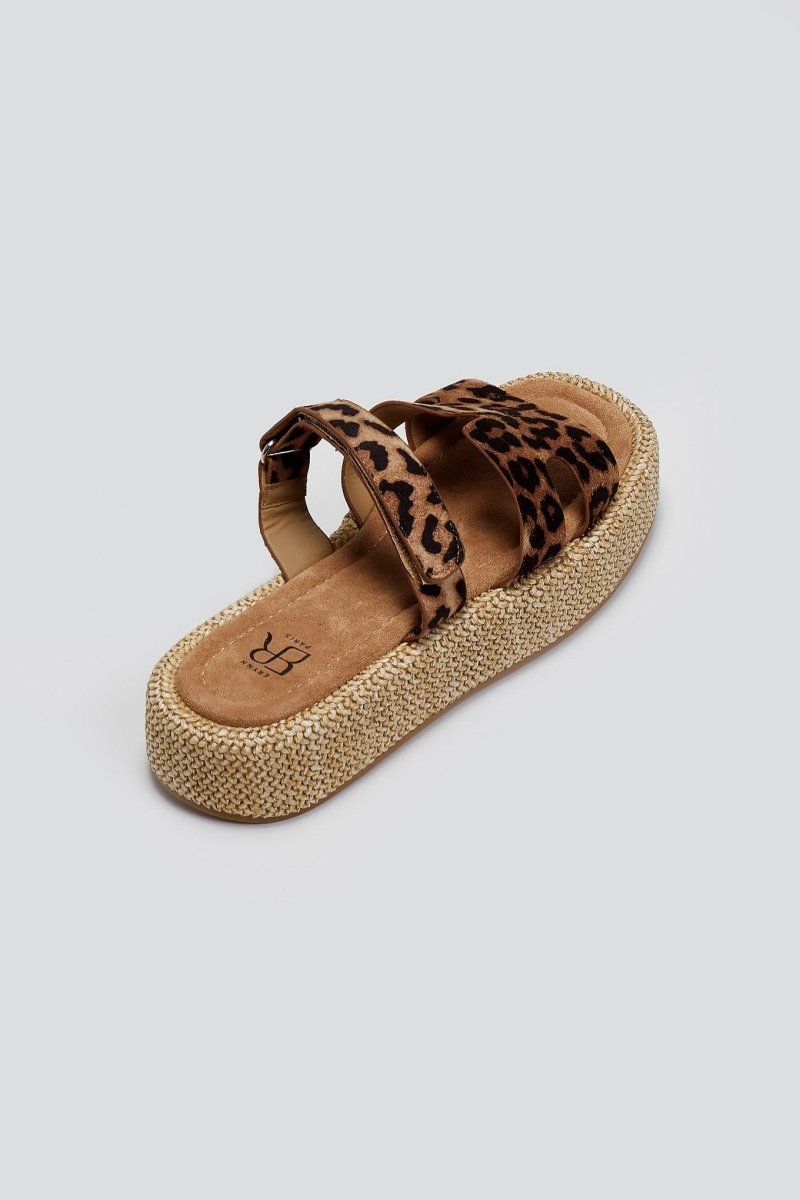Flatforms suede σανδάλια με velcro ERYNN. Φάσα με ανοίγματα στο πλάι. Σόλα ντυμένη με ψάθα.