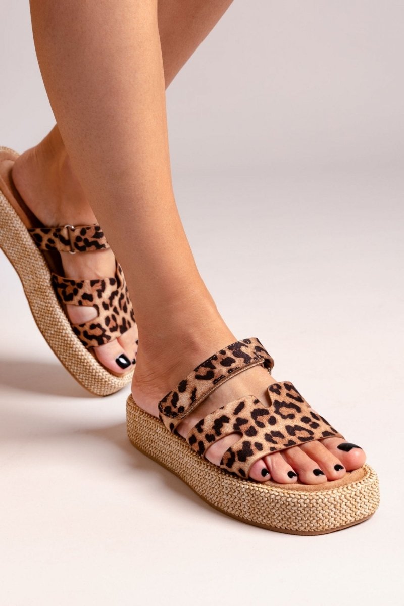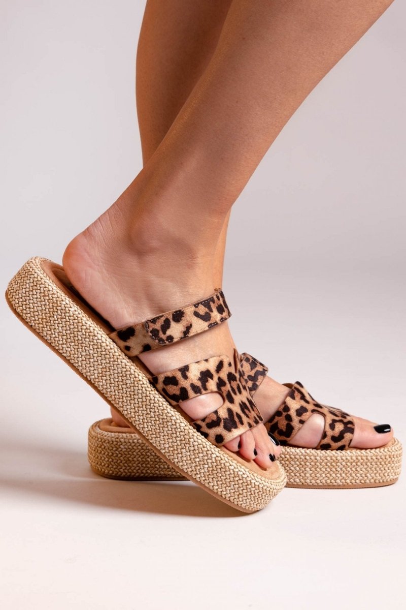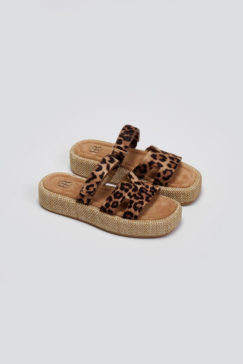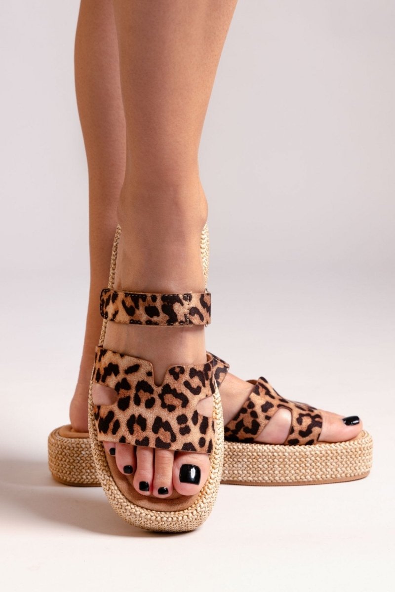 Flatforms suede σανδάλια με velcro ERYNN. Φάσα με ανοίγματα στο πλάι. Σόλα ντυμένη με ψάθα.