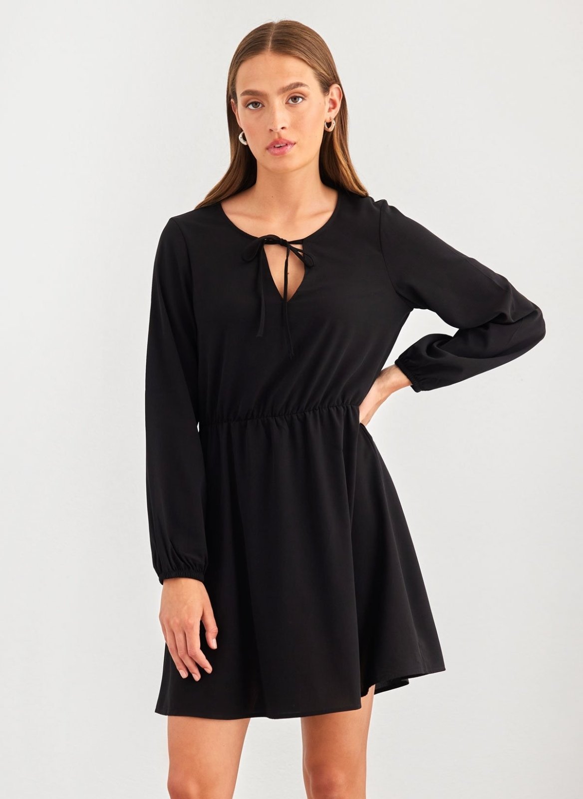 Φόρεμα μίνι με cut out άνοιγμα και κορδονάκι στο μπούστο Vero Moda. Έχει μακριά μανίκια με λάστιχο στο τελείωμα. Λάστιχο στη μέση.