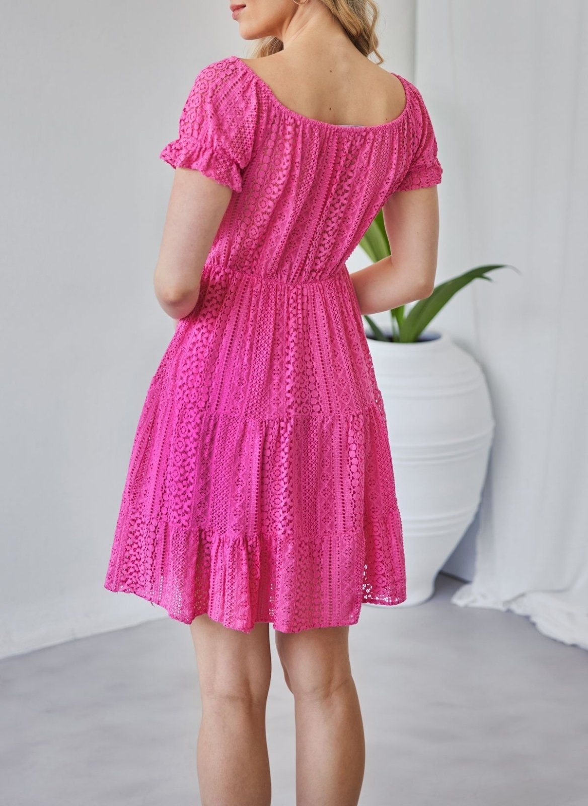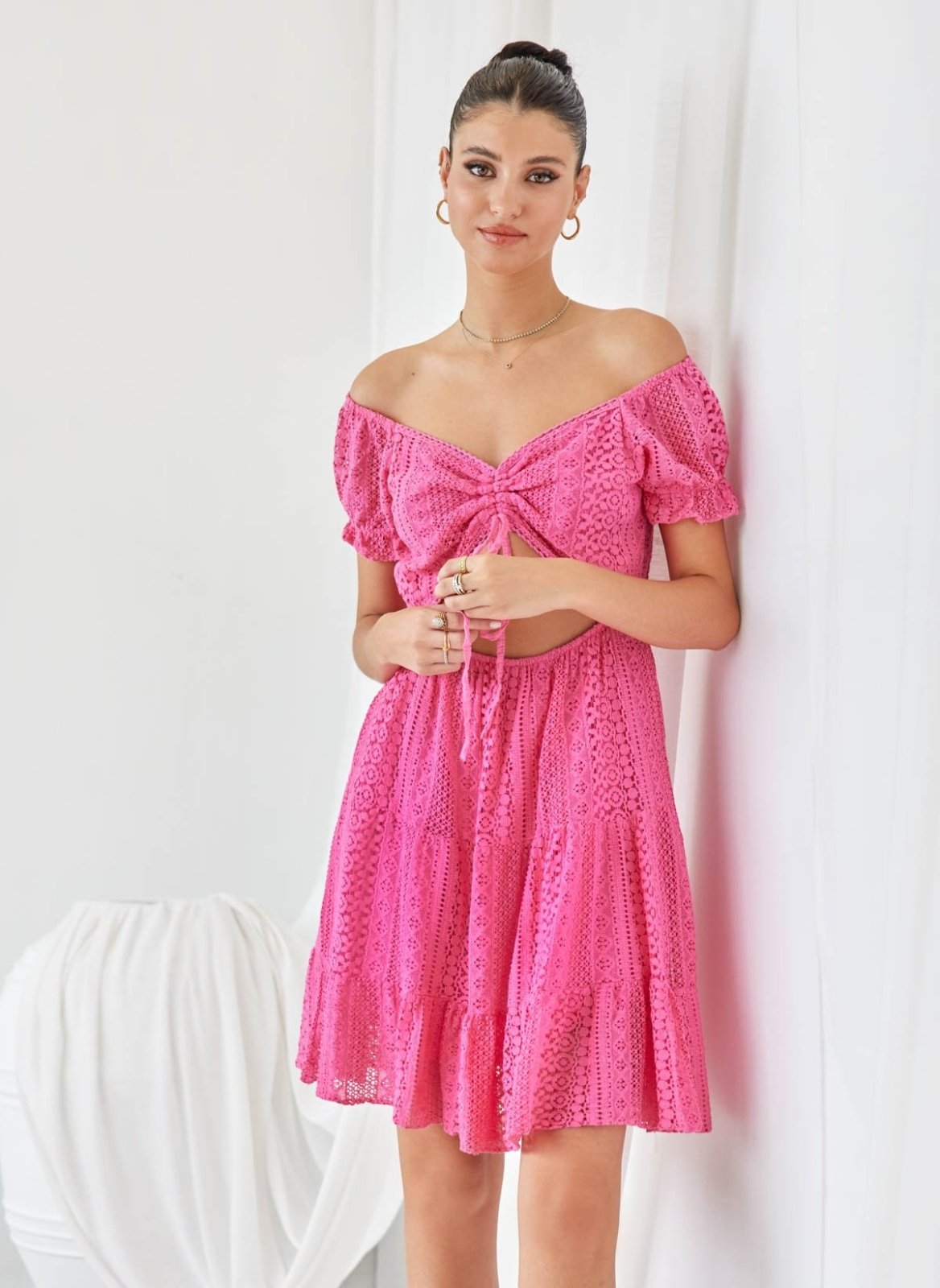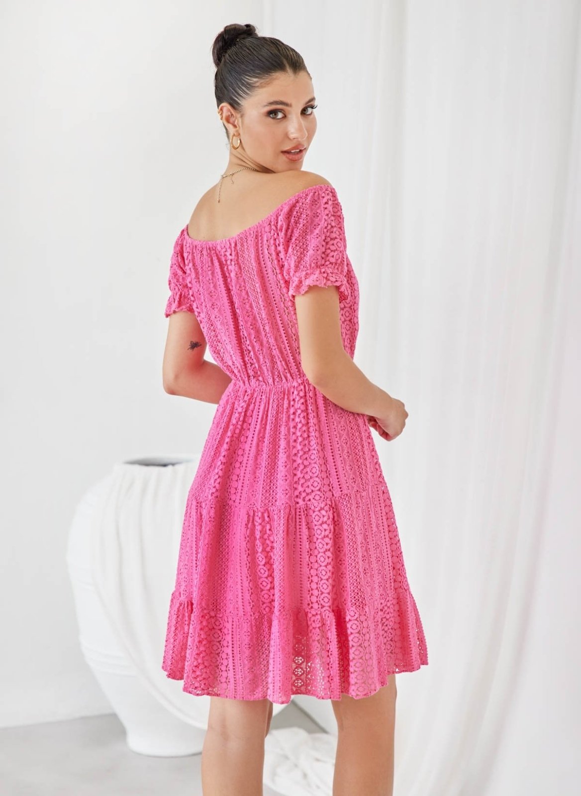Φόρεμα με δαντέλα και cut out - Φούξια