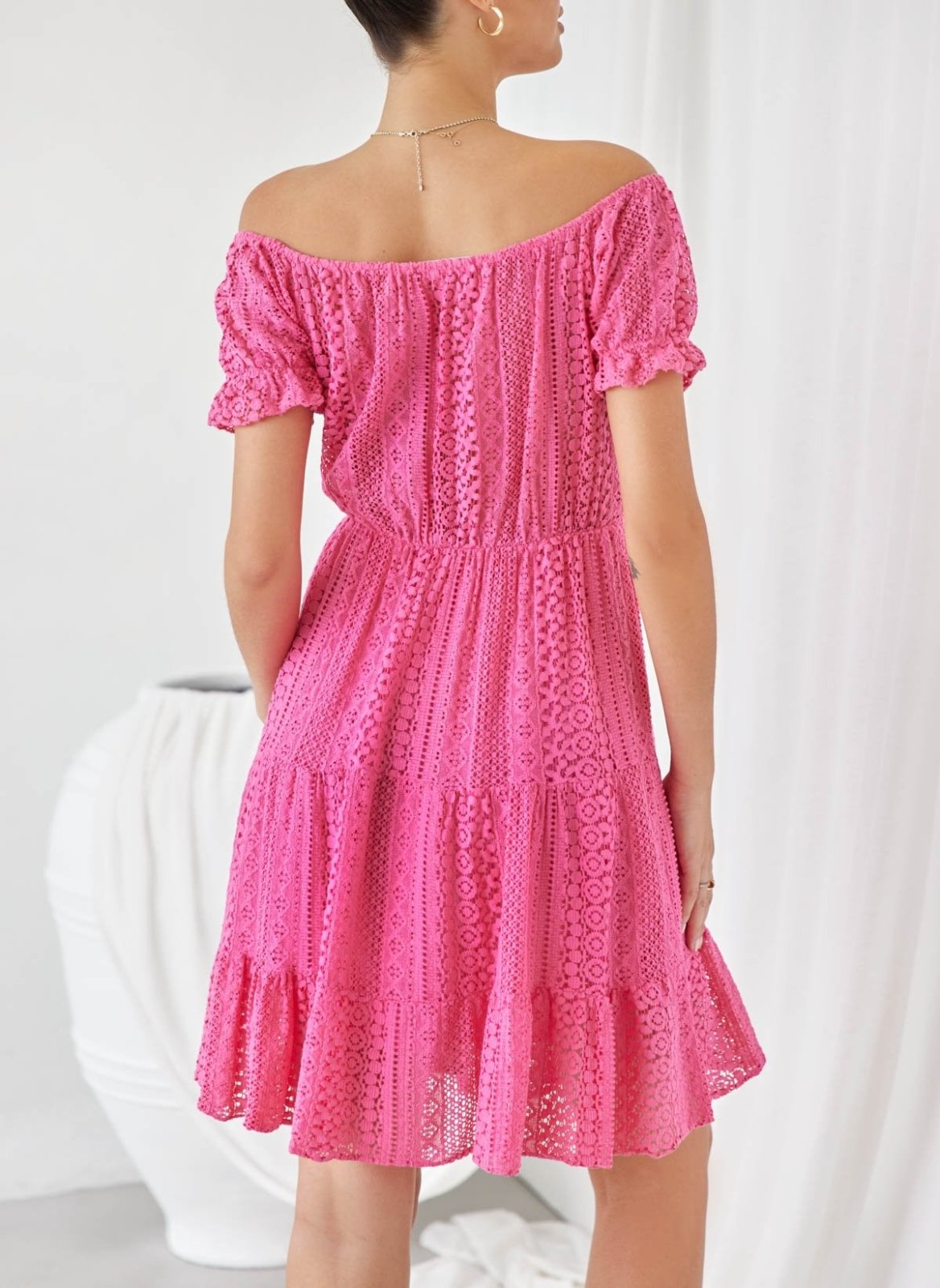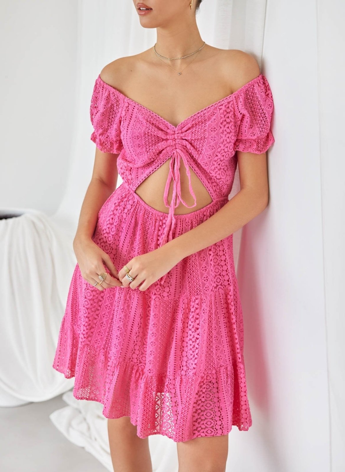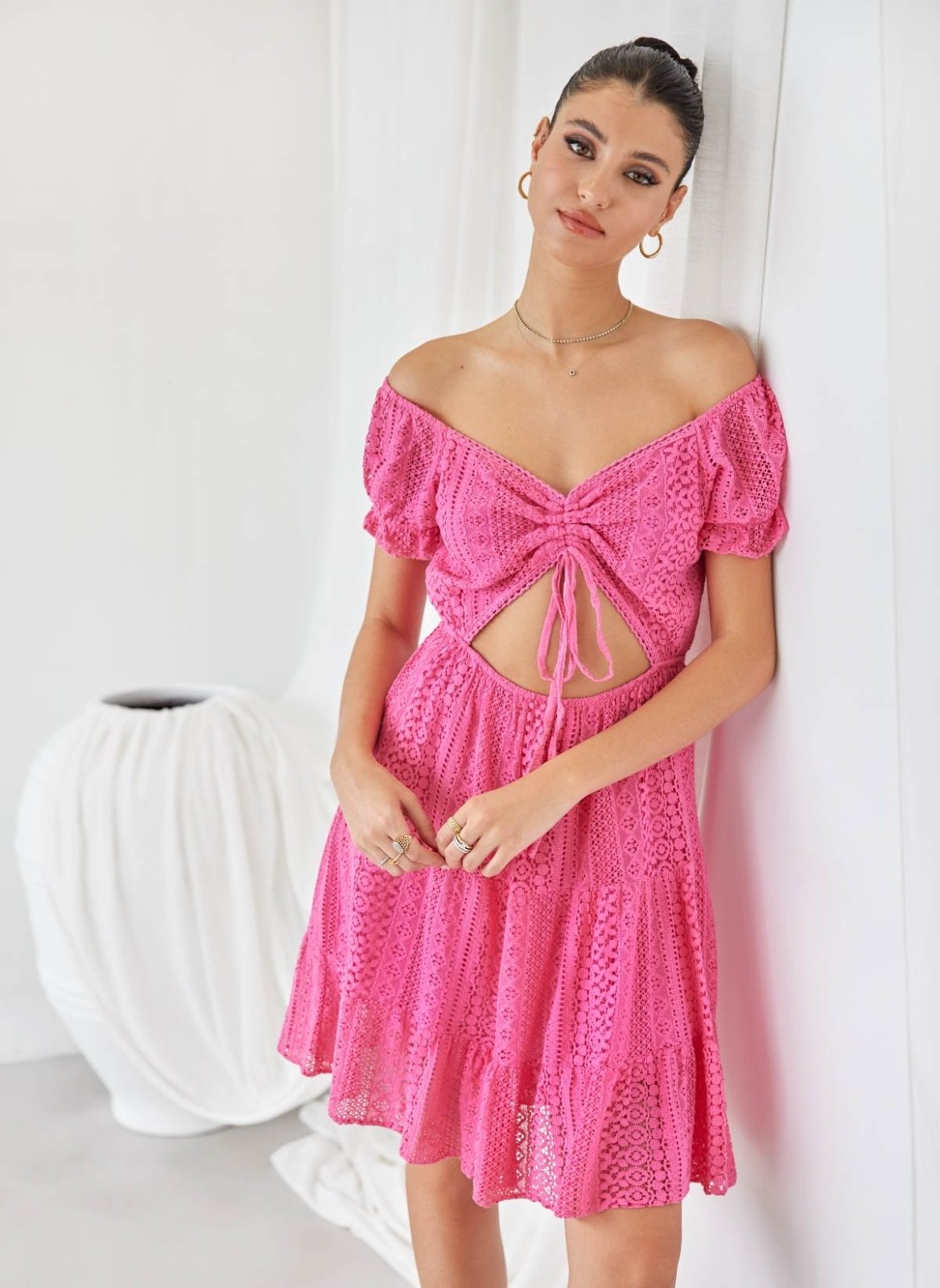 Φόρεμα με δαντέλα και cut out - Φούξια