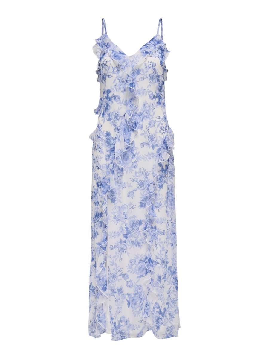 Φόρεμα φλοράλ με βολάν ONLY - Γαλάζιο