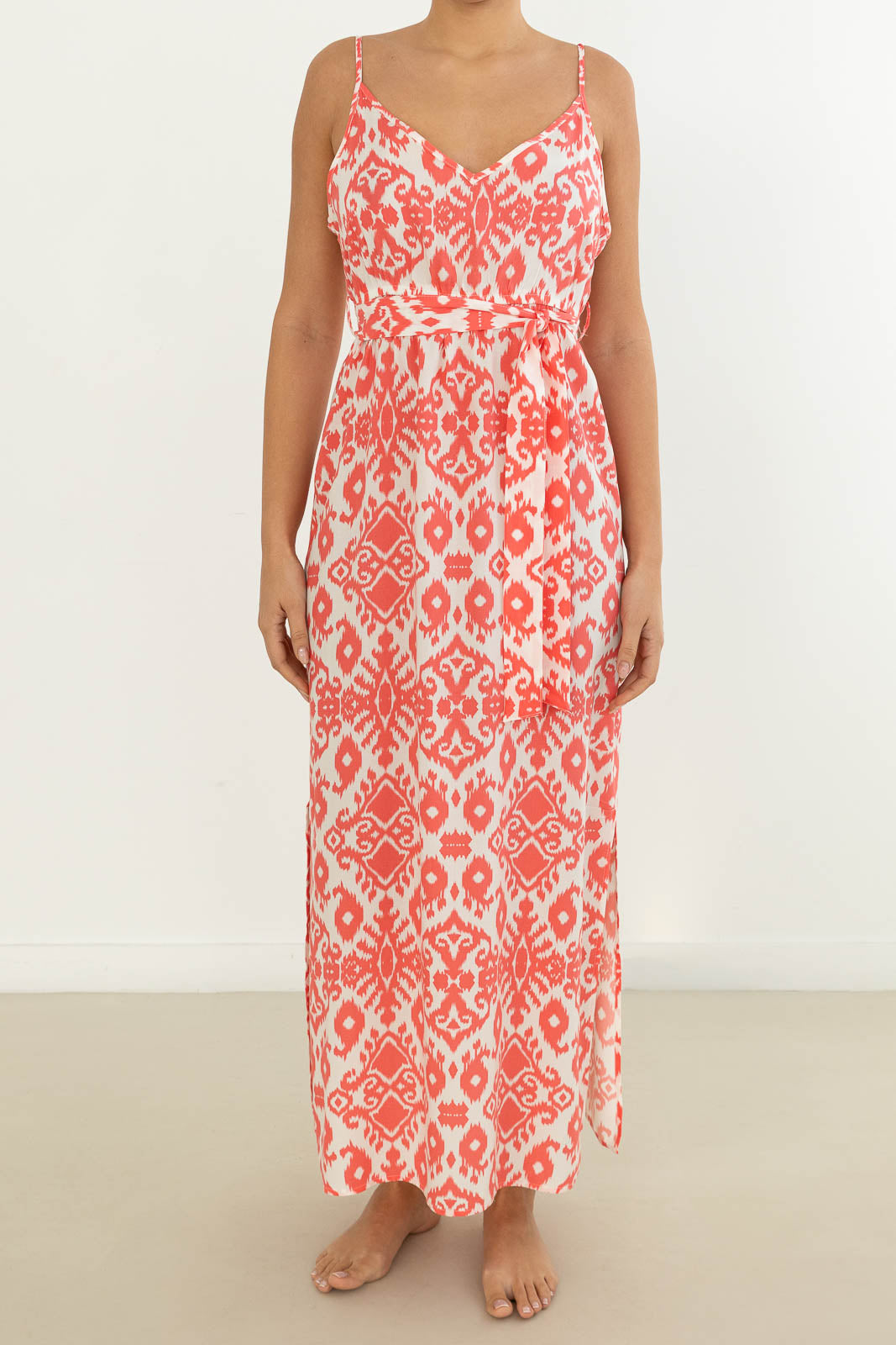 Φόρεμα μακρύ με print Vero Moda 10307995 - Κοραλί