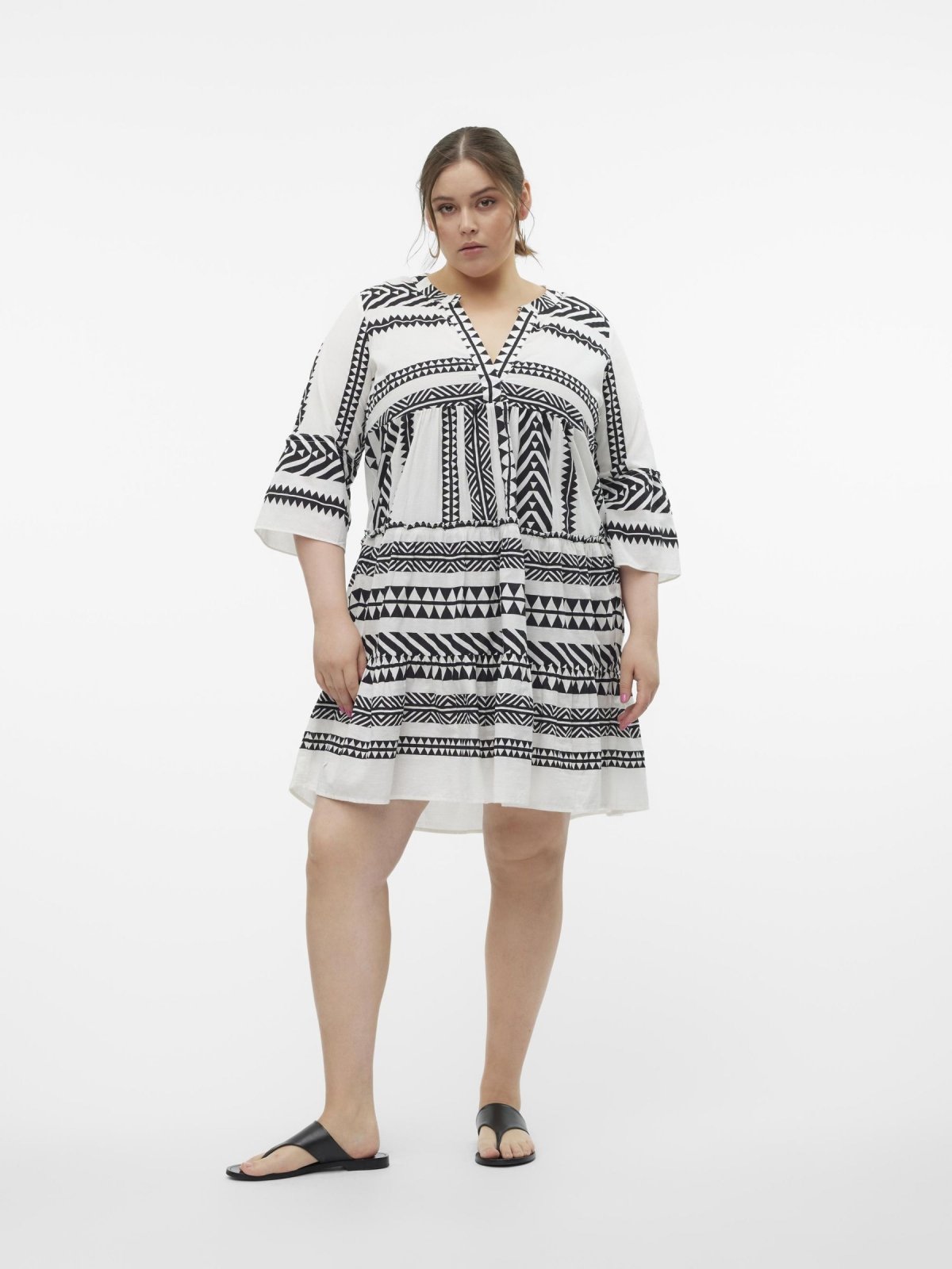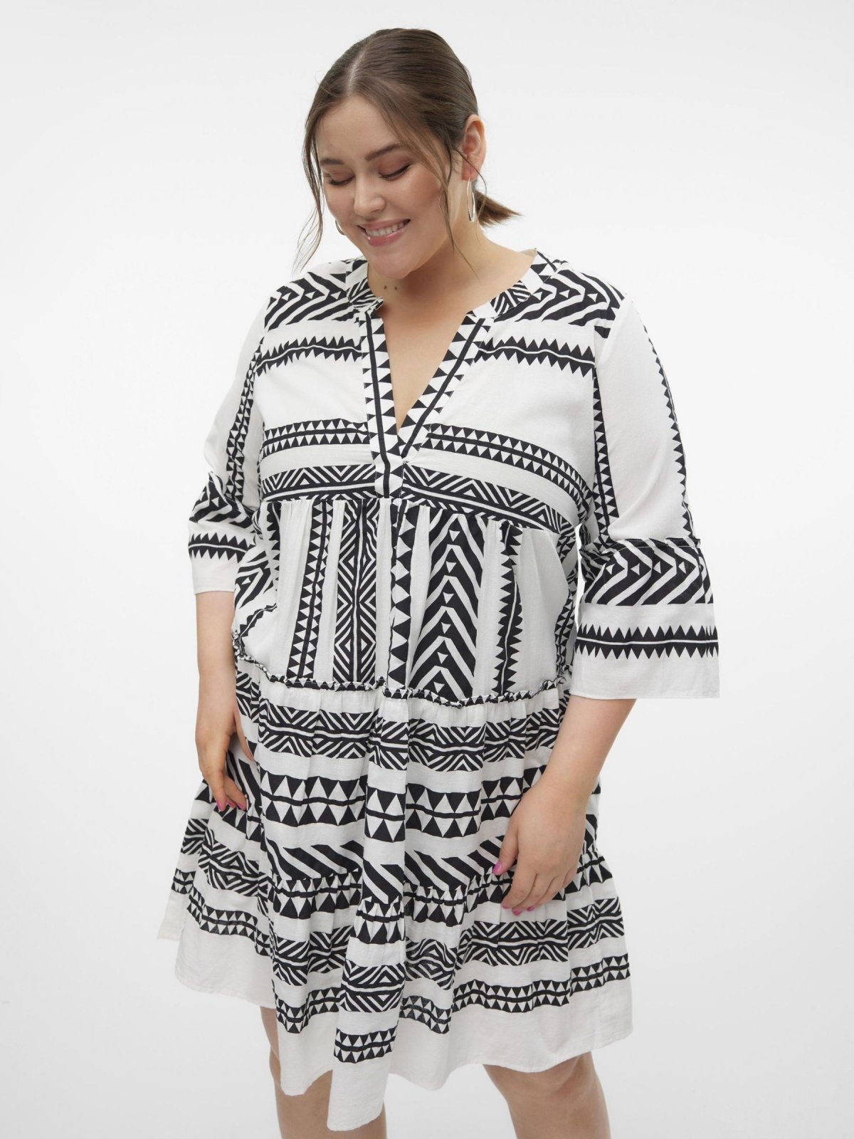Φόρεμα με print Vero Moda Curve 10294292 - Λευκό/Μαύρο