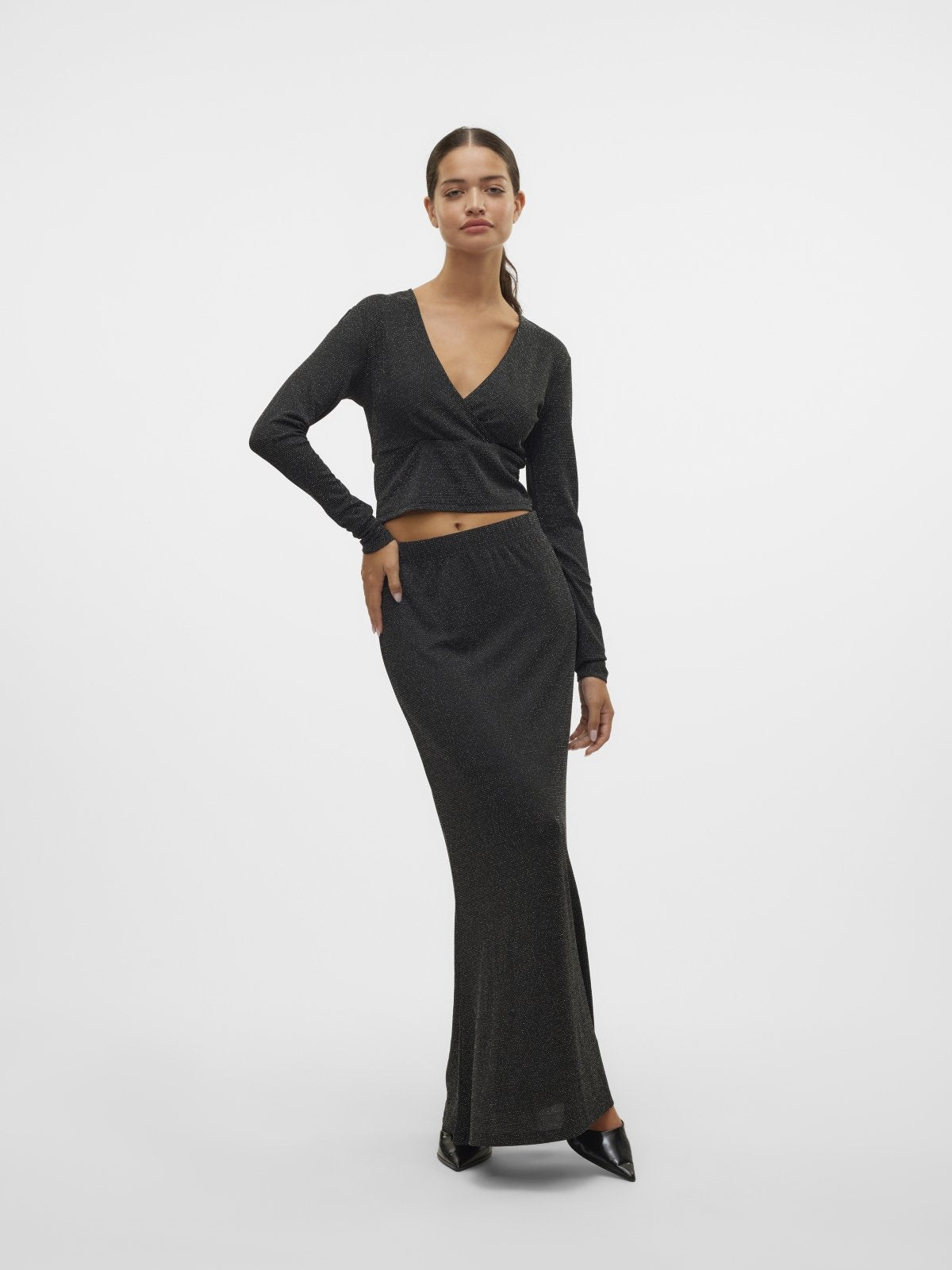 Φούστα μάξι με glitter ύφασμα Vero Moda 10316739 - Μαύρο/Ασημί