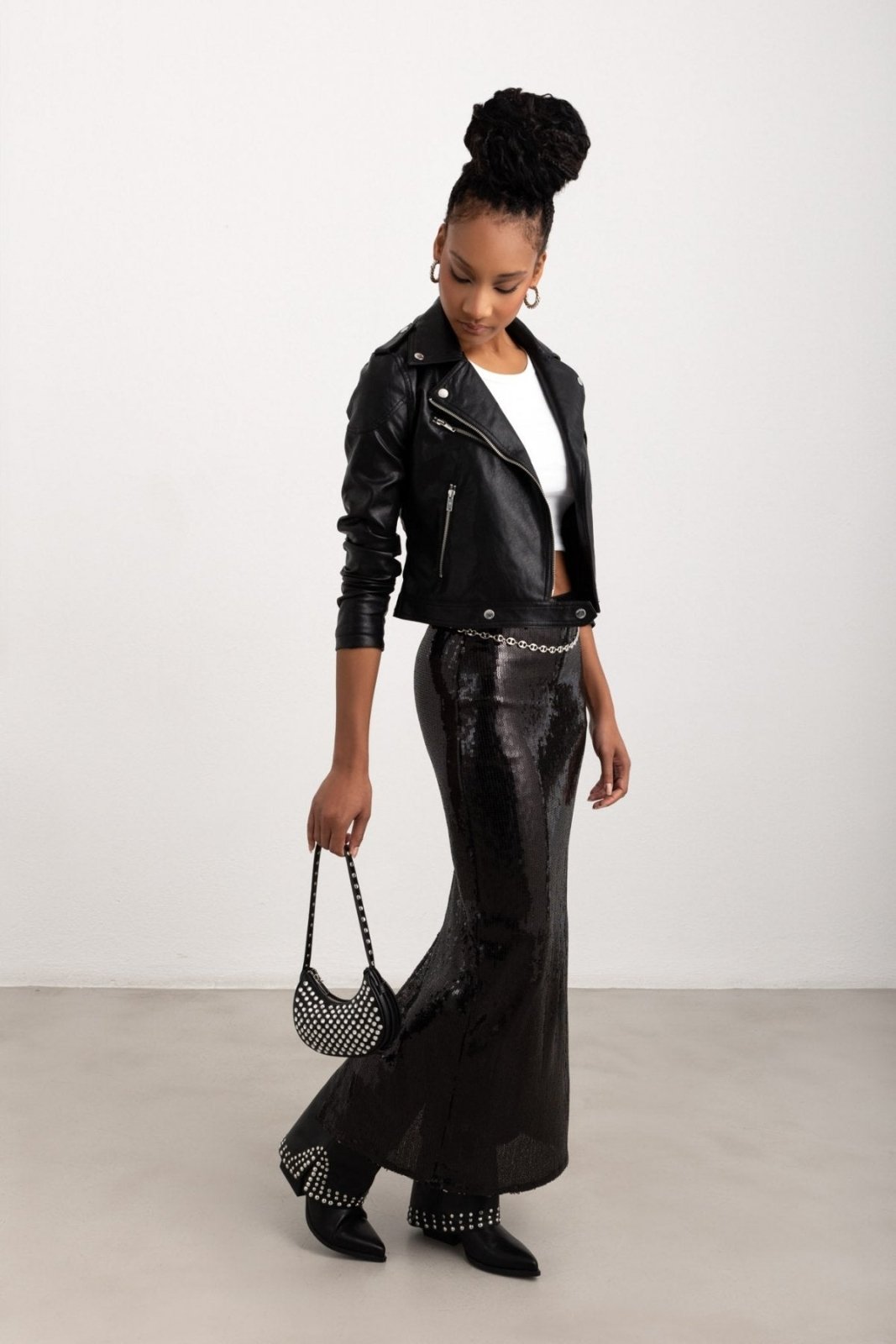 Φούστα μάξι με παγιέτες ONLY 15337139 - Μαύρο