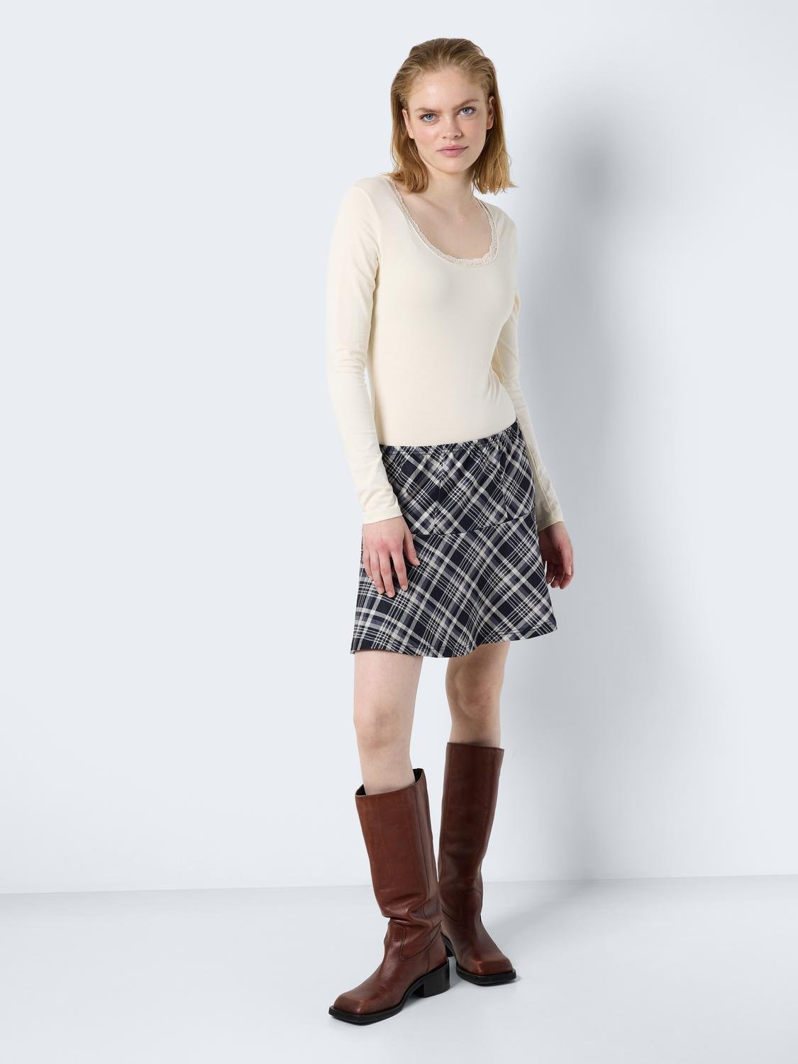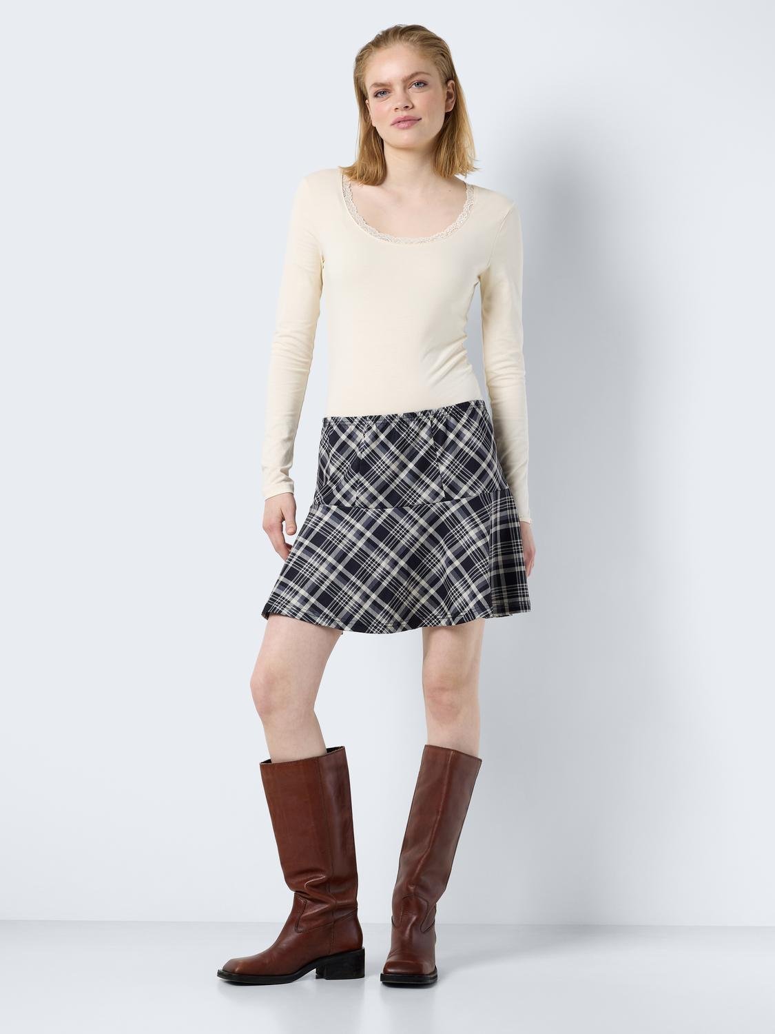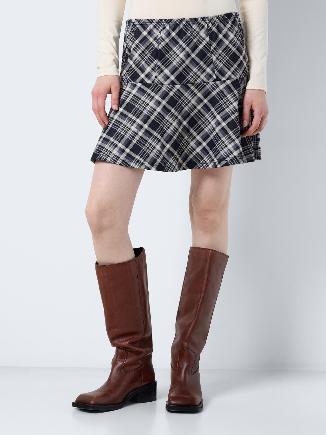 Φούστα μίνι καρό NOISY MAY. Ελαστική μέση. Άλφα γραμμή.