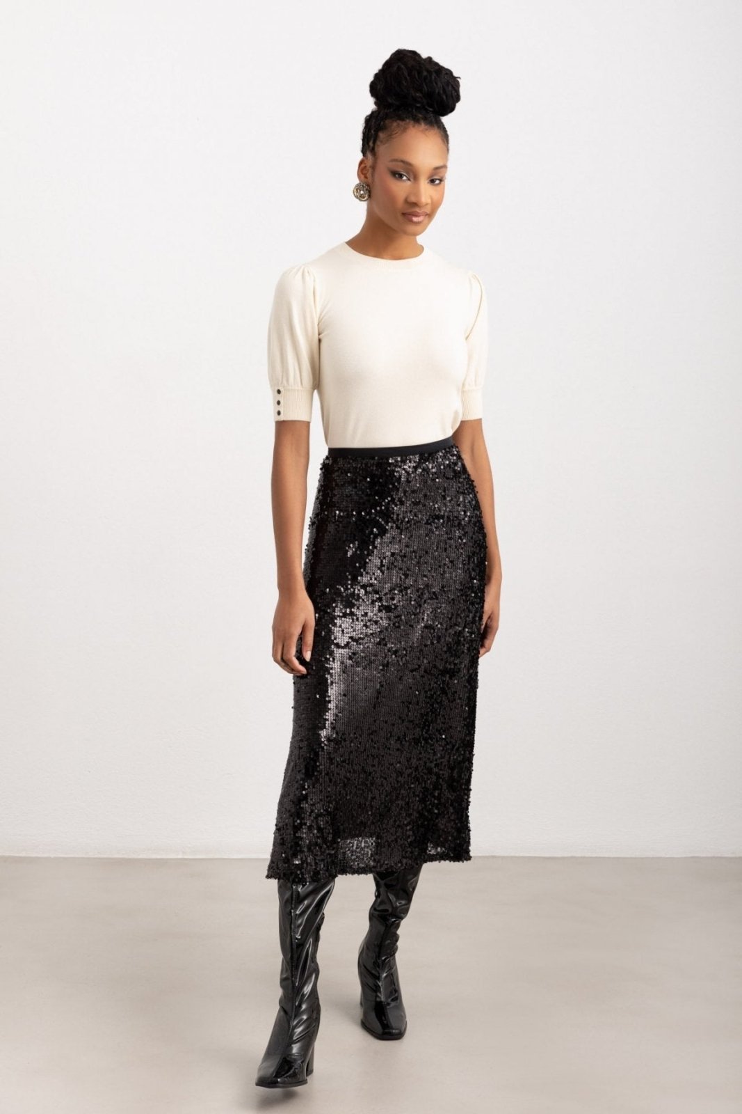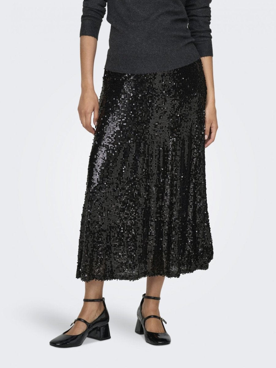 Φούστα με παγιέτες ONLY 15332682 - Μαύρο