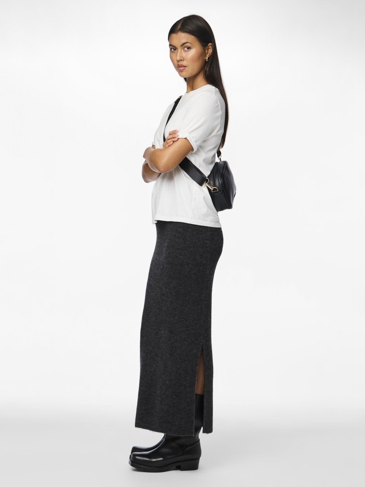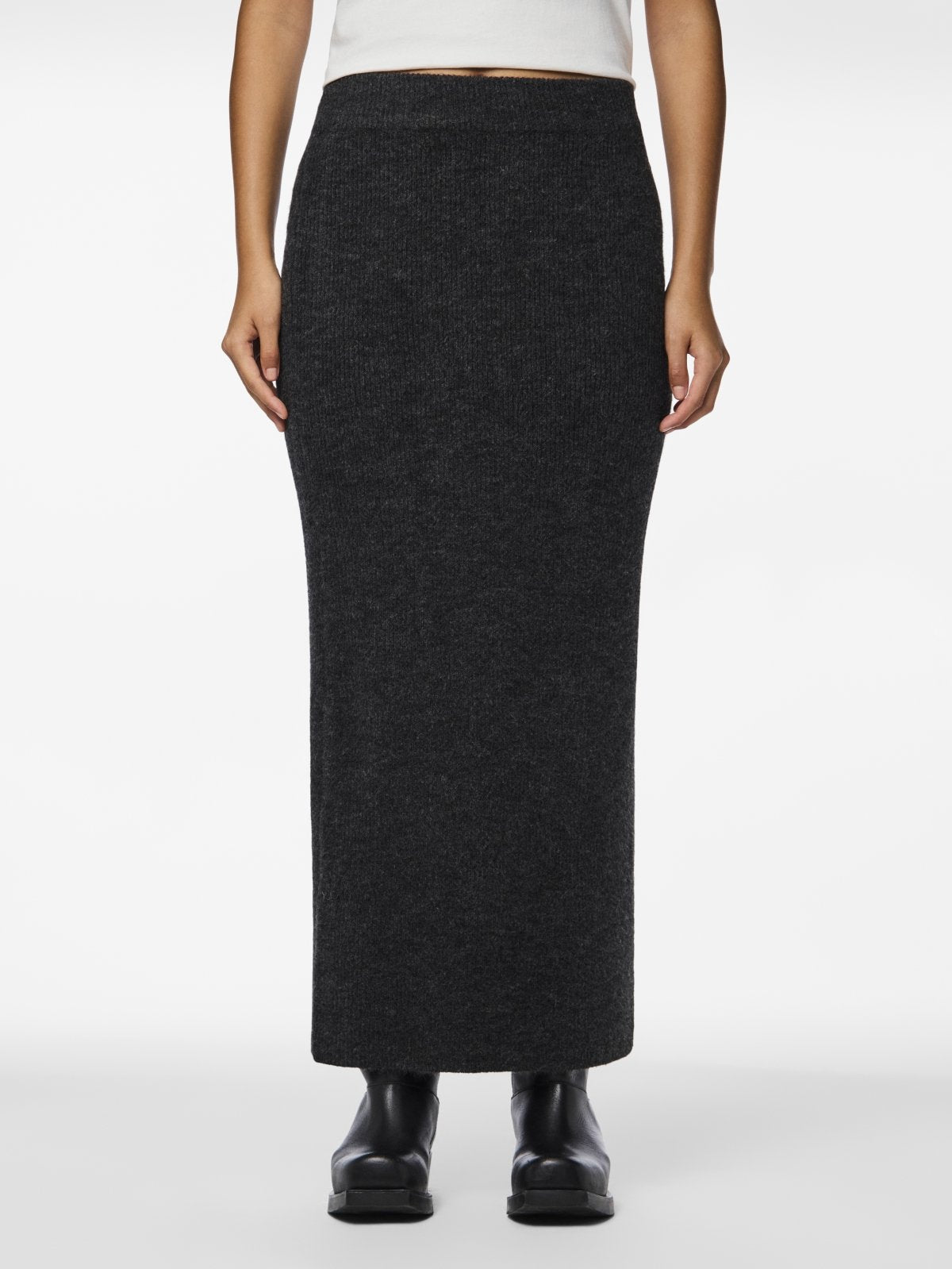 Φούστα πλεκτή με άνοιγμα PIECES 17149631 - Ανθρακί