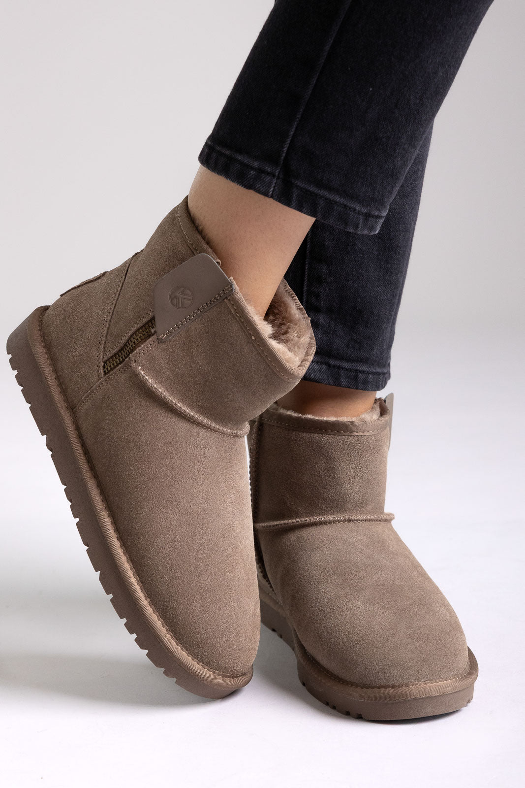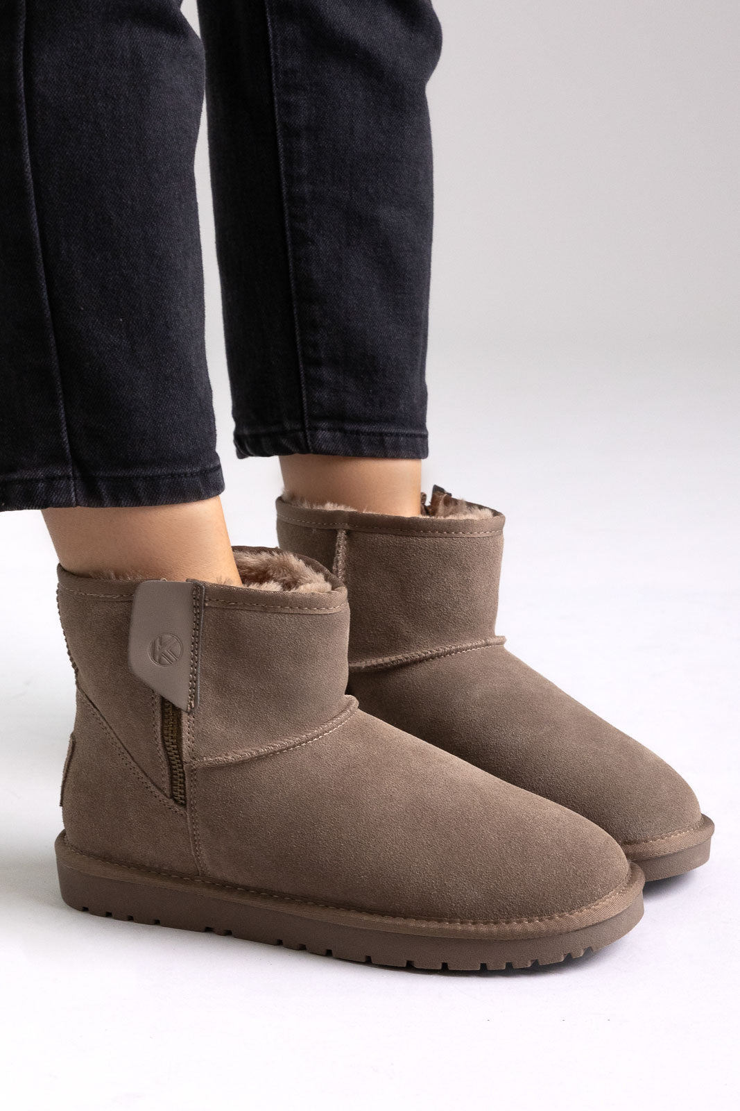 Fur Lined Ankle Boots Side Zip Kelara - Taupe Suede