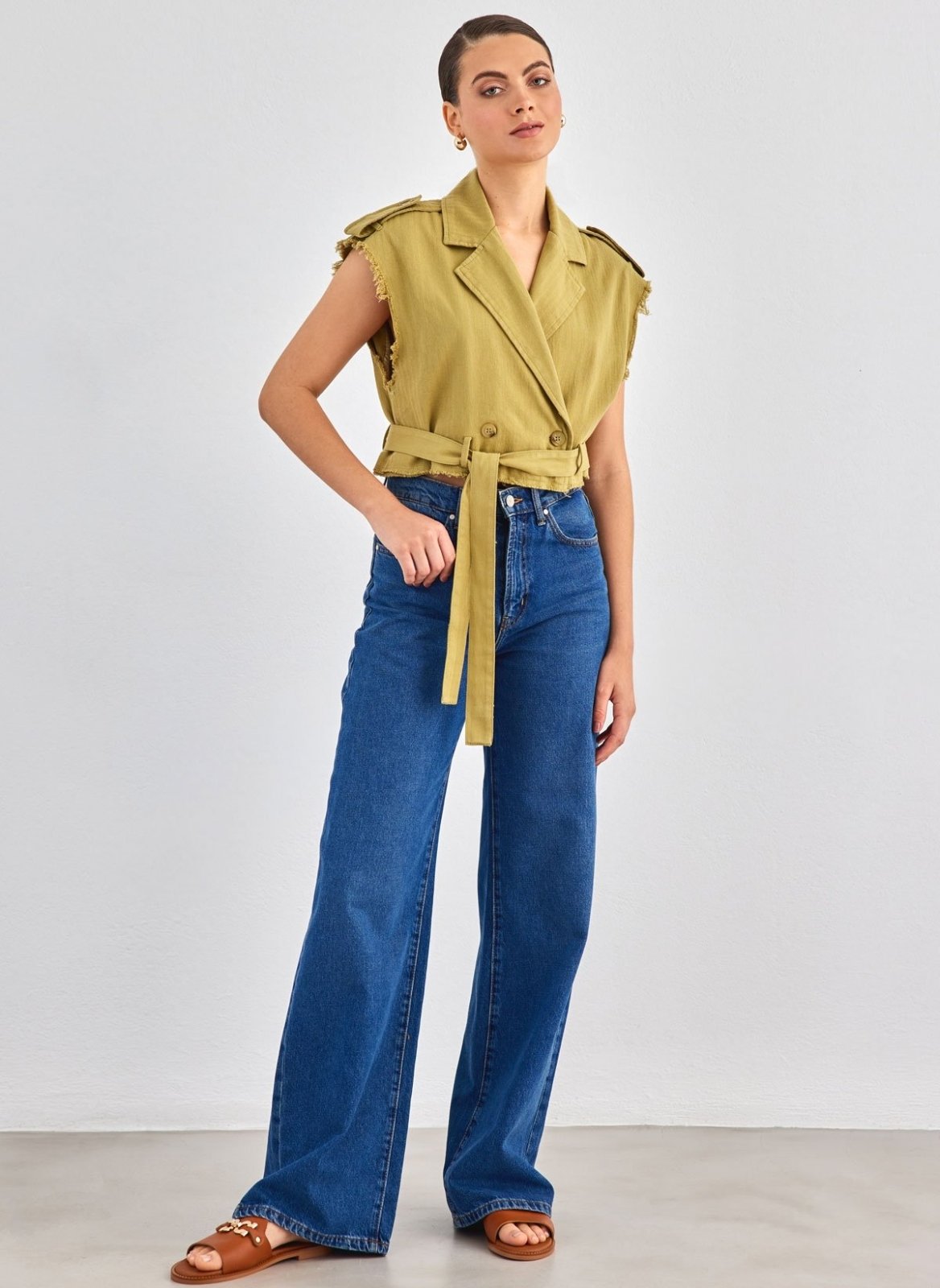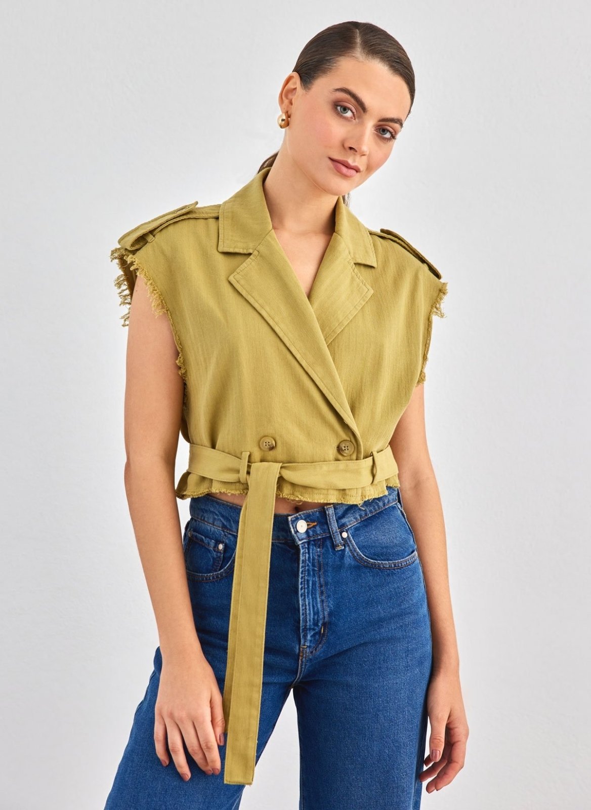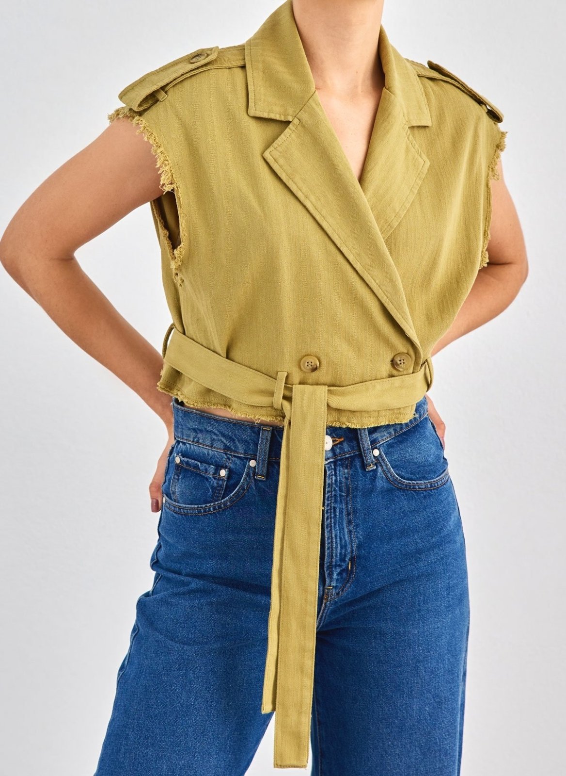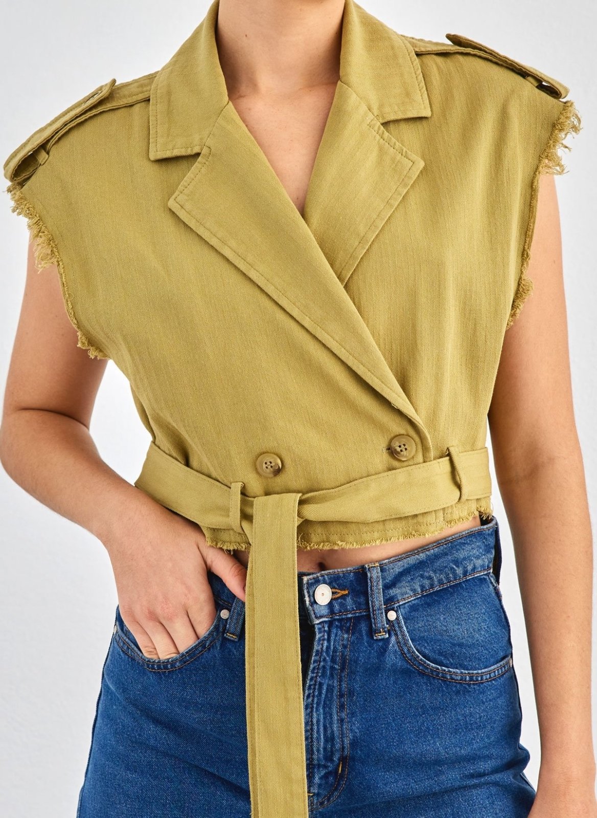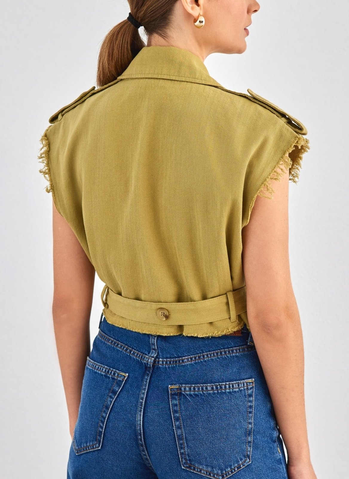 Γιλέκο κοντό με ζωνάκι - Χακί