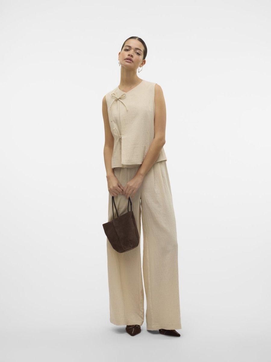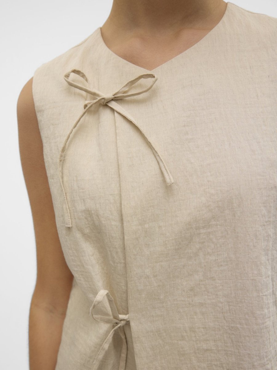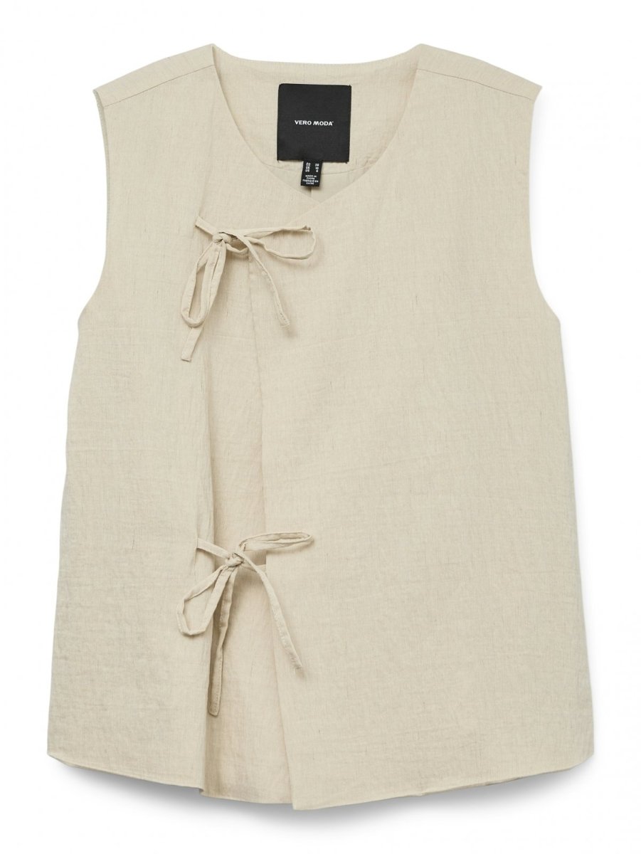 Γιλέκο υφασμάτινο με λινό Vero Moda. Κλείσιμο με κορδόνια στο πλάι. Ίσια γραμμή.