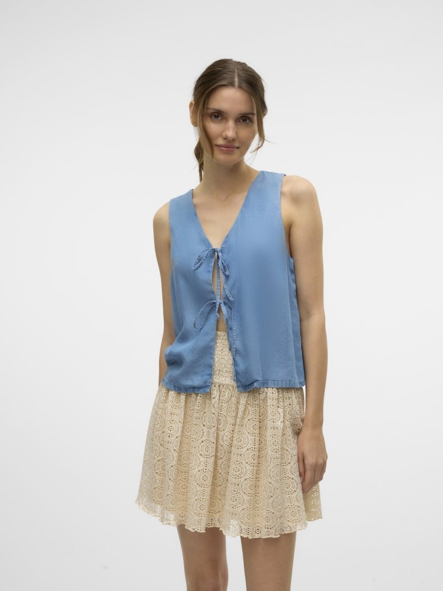 Γιλέκο από μαλακό ύφασμα με denim όψη Vero Moda. Kλείσιμο με δετά κορδόνια στη μπροστινή πλευρά.