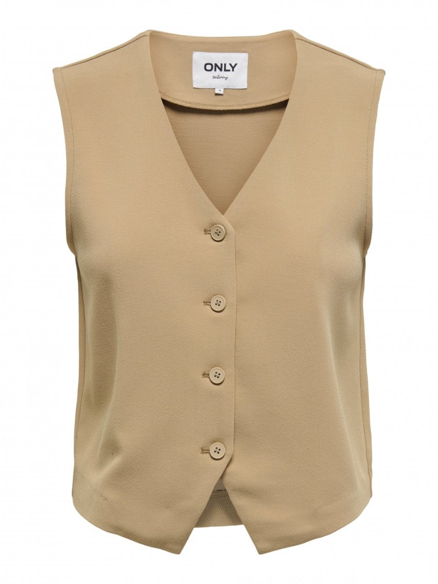 Γιλέκο υφασμάτινο ONLY. V cut λαιμόκοψη. Κλείσιμο με κουμπιά.