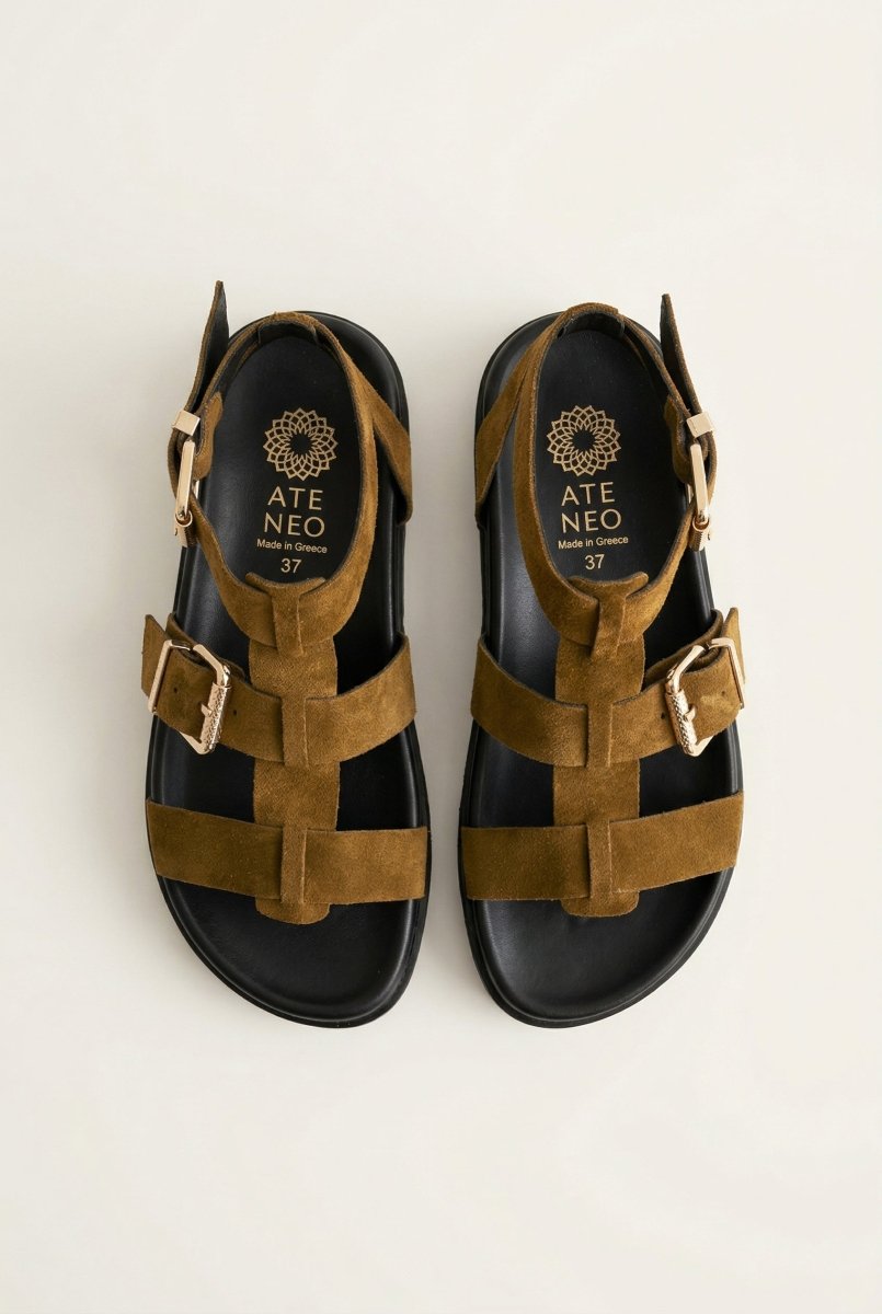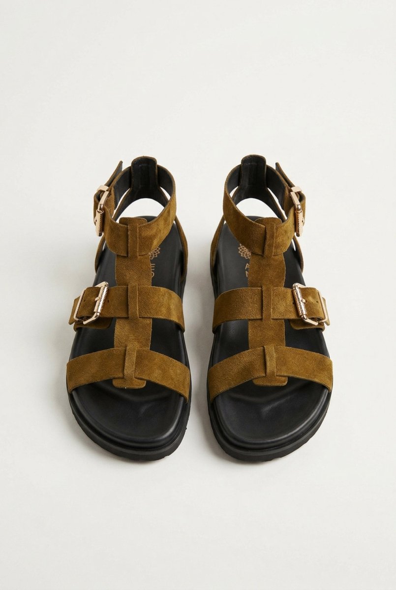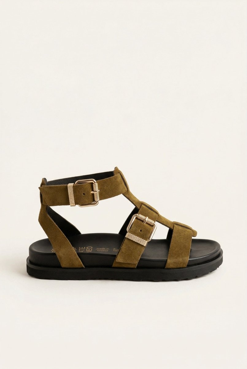 Gladiator Sandals Buckle Straps - Olive Suede