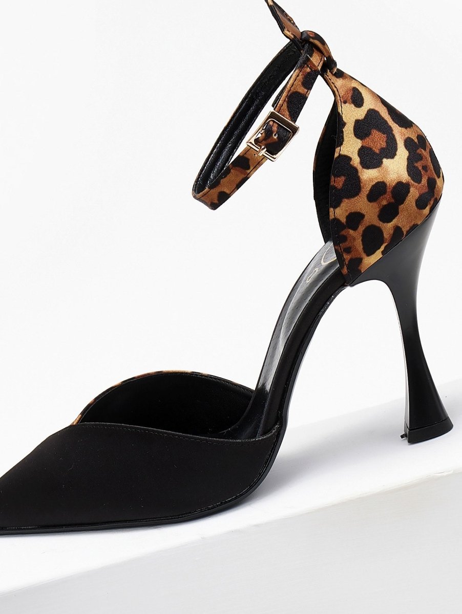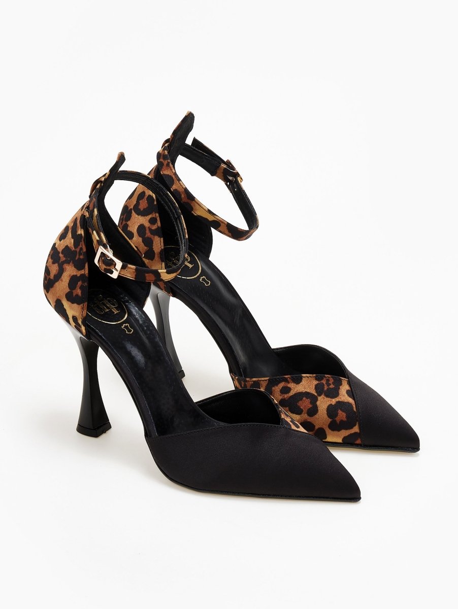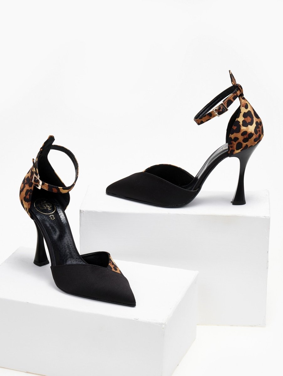 Γόβες μυτερές σατέν με μπαρέτα TFP - Leopard