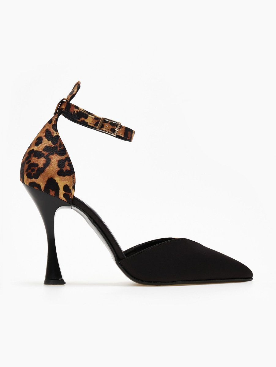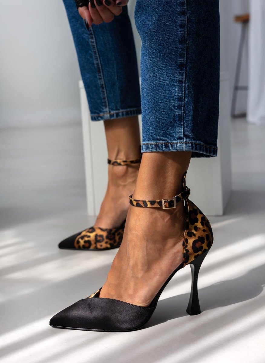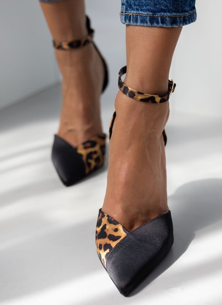 Γόβες μυτερές σατέν με μπαρέτα TFP - Leopard