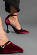 Γόβες από velvet ύφασμα με μπαρέτα TFP - Burgundy