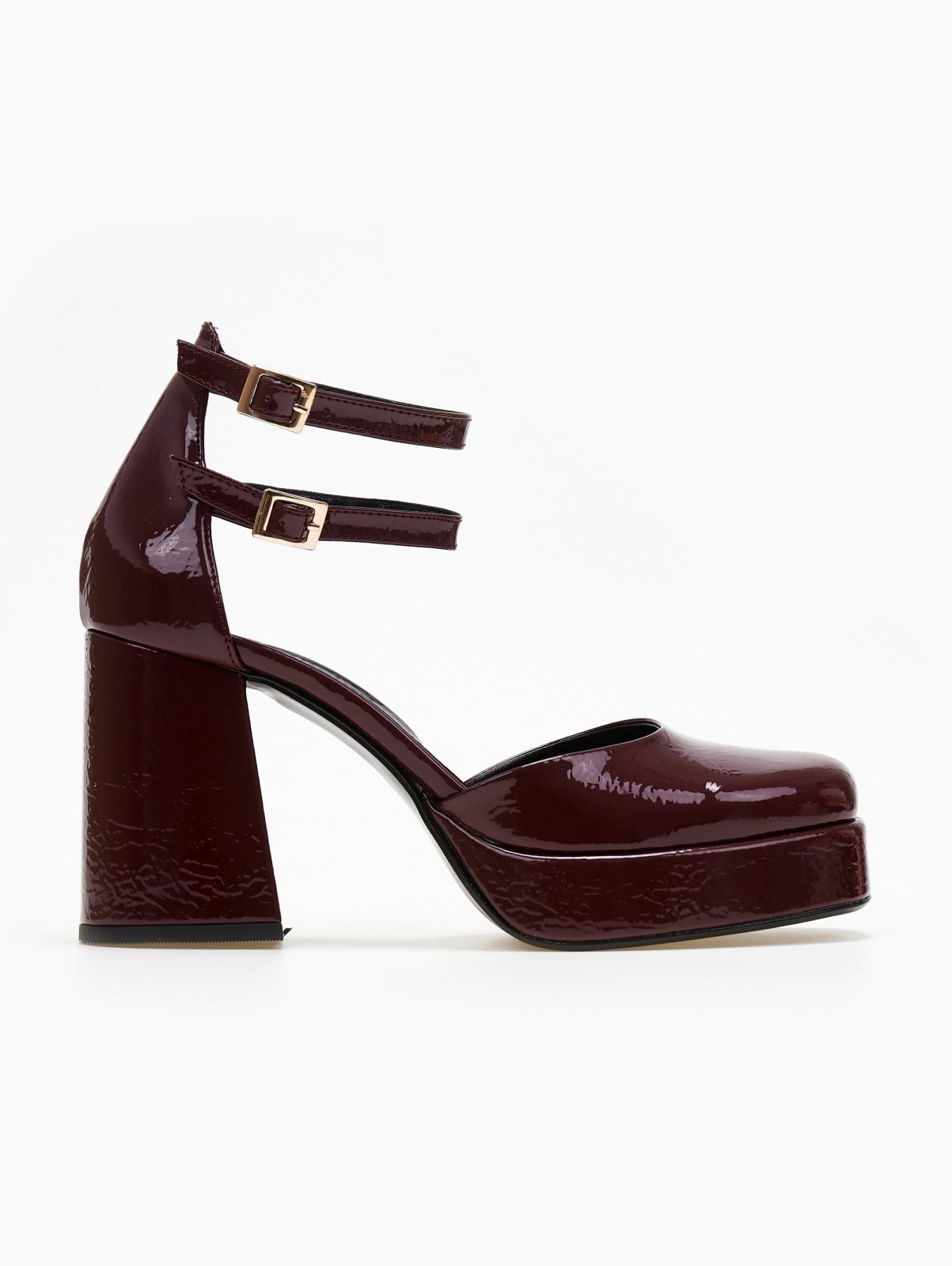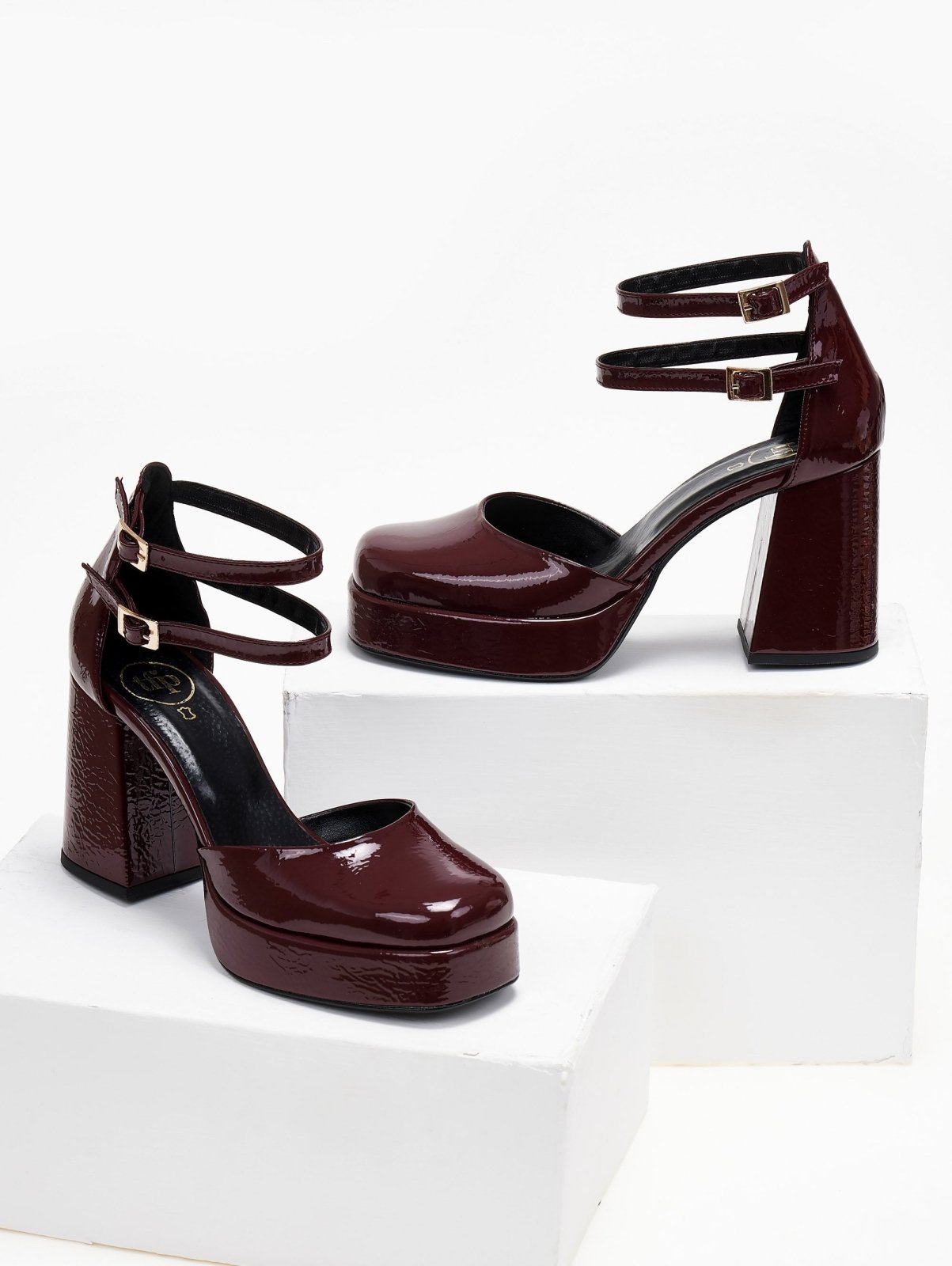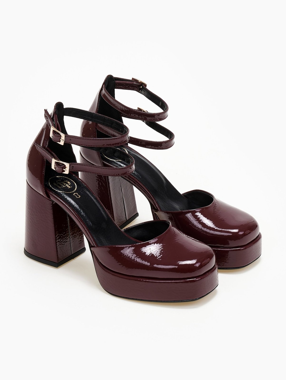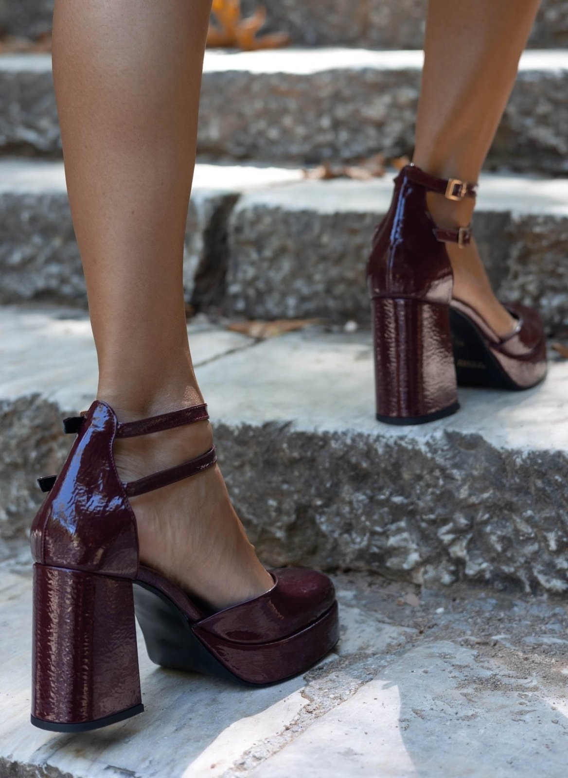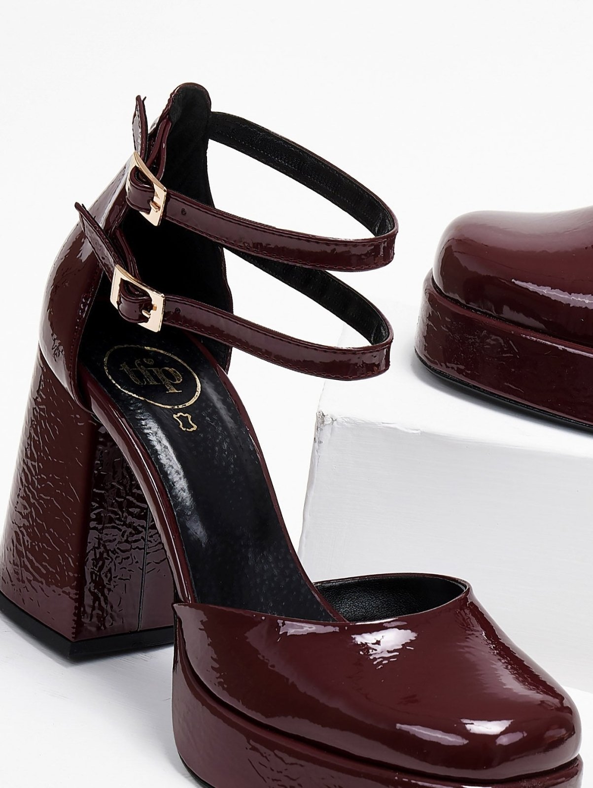 Γόβες λουστρίνι με διπλή μπαρέτα TFP - Μπορντό