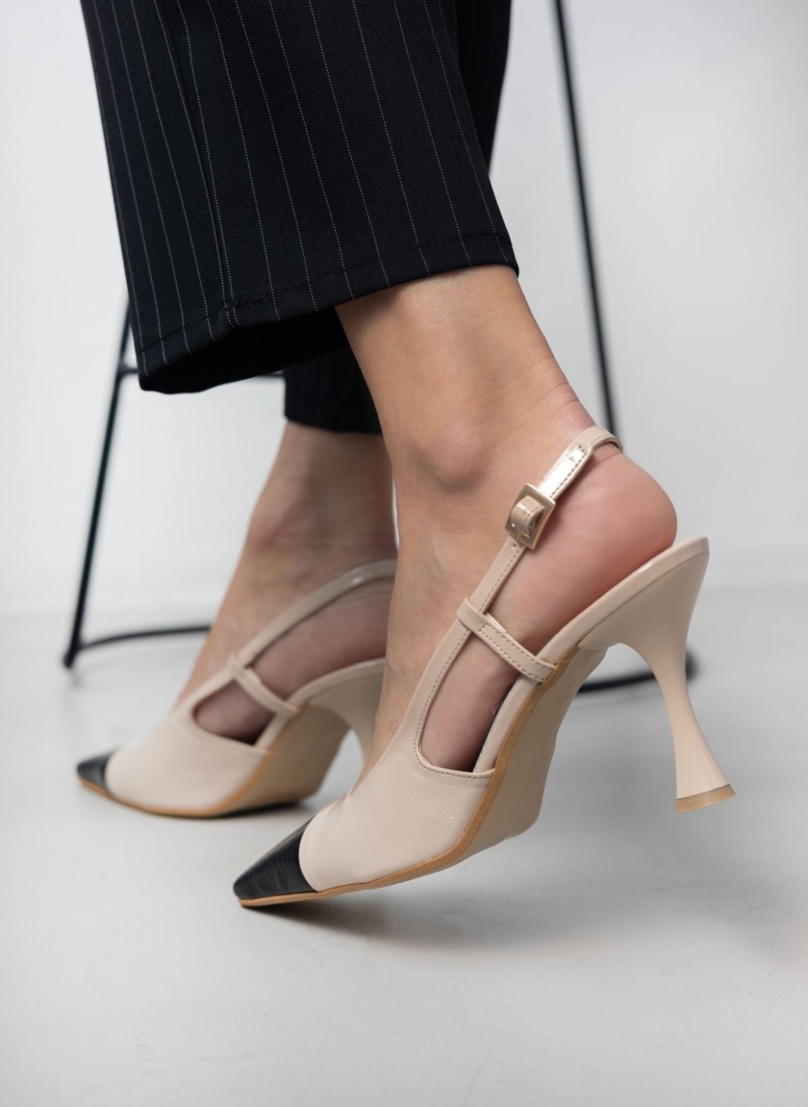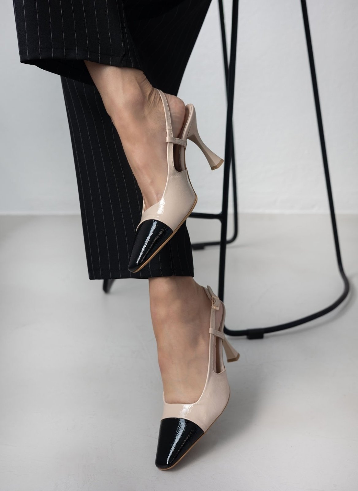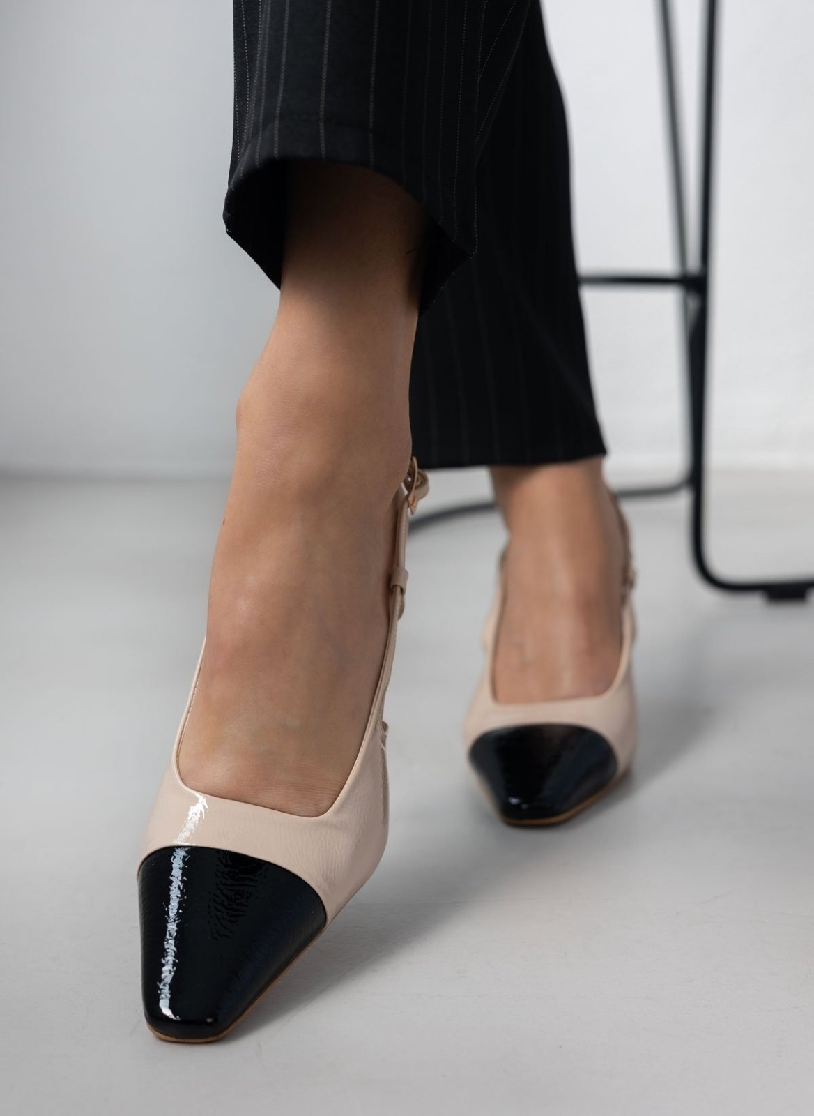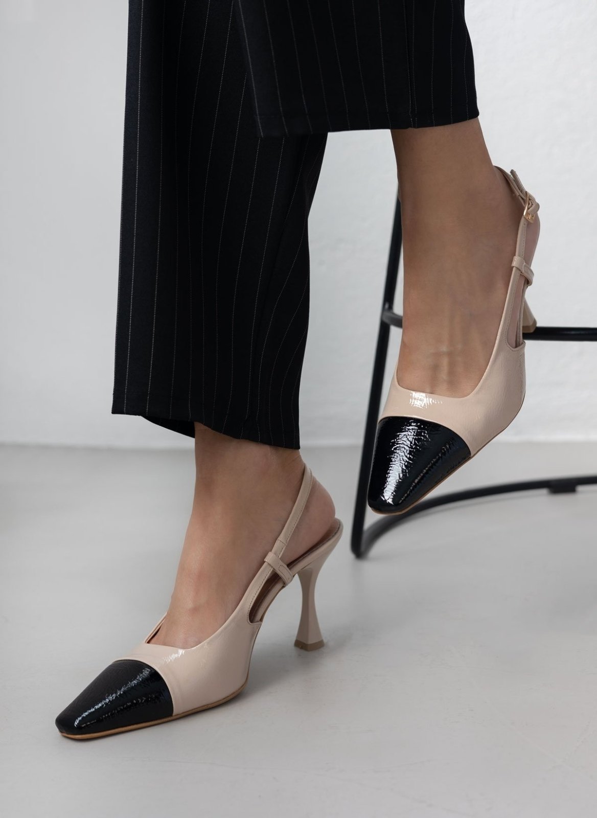 Γόβες λουστρίνι TFP. Έχουν ανοιχτή φτέρνα. Δένουν με λουράκι στο πλάι. Δερμάτινος πάτος. Ελληνικής κατασκευής.
