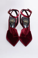 Γόβες μυτερές ασύμμετρες από velvet ύφασμα TFP - Burgundy