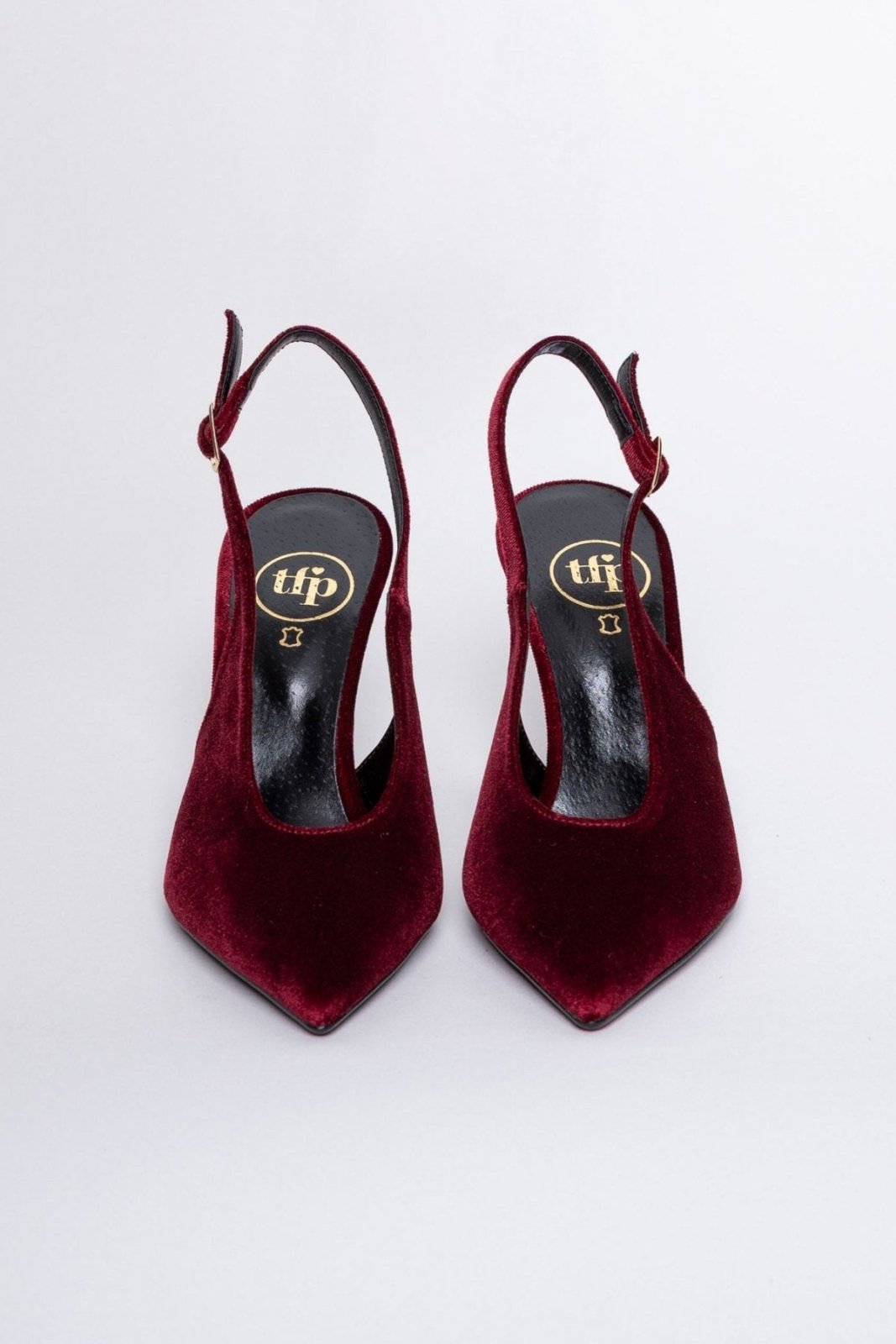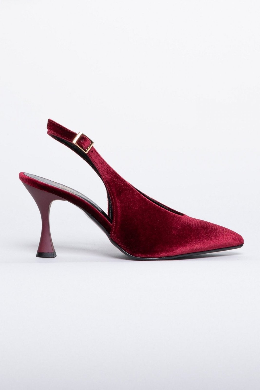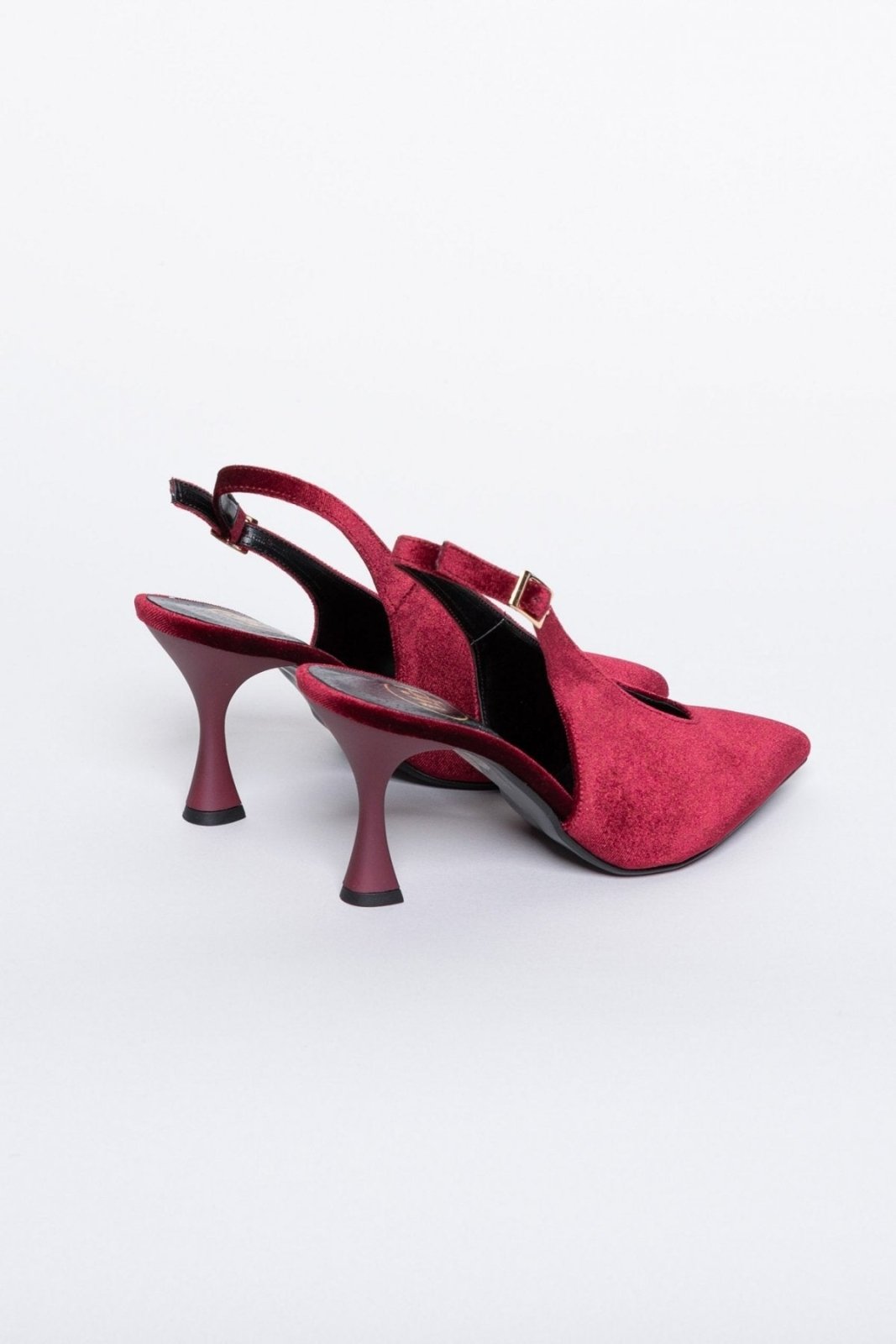 Γόβες μυτερές slingback από velvet ύφασμα TFP - Burgundy