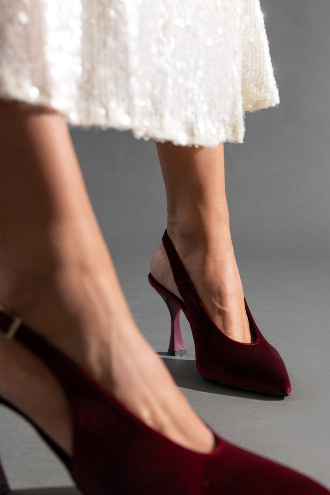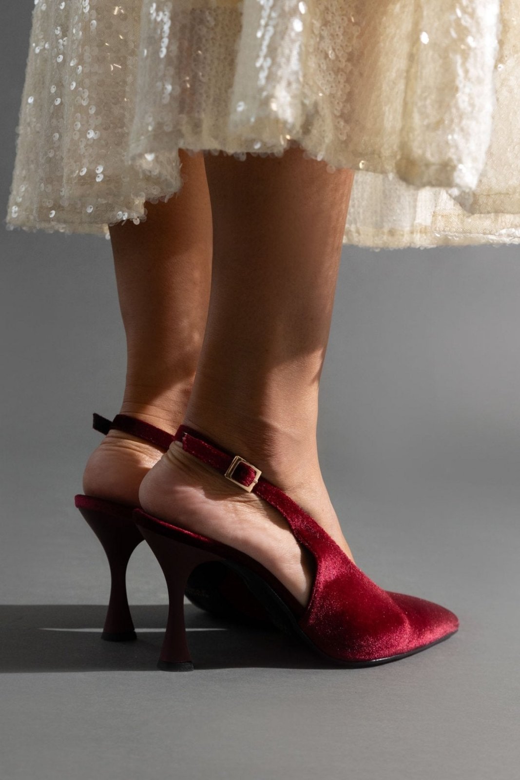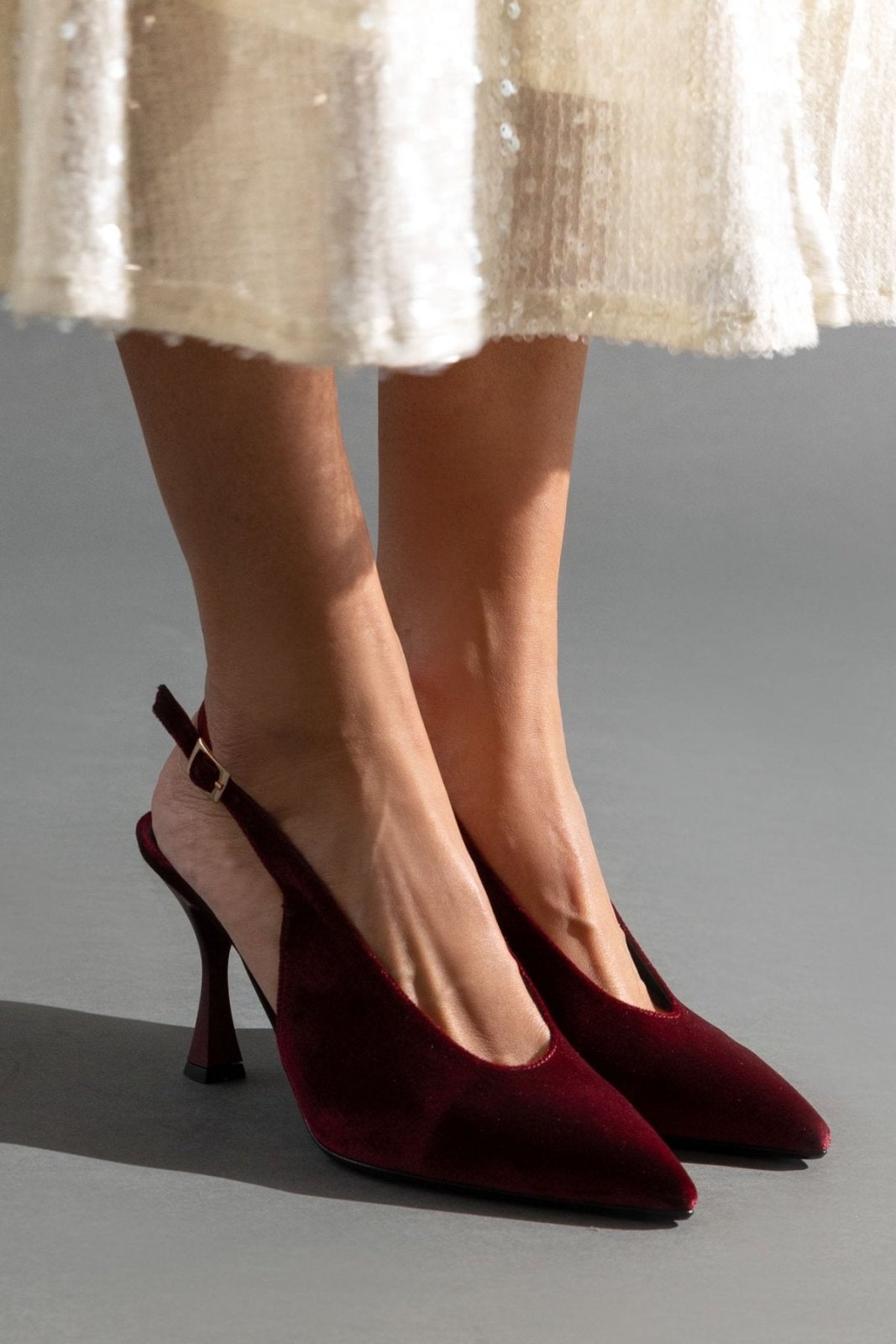Γόβες μυτερές slingback από velvet ύφασμα TFP - Burgundy