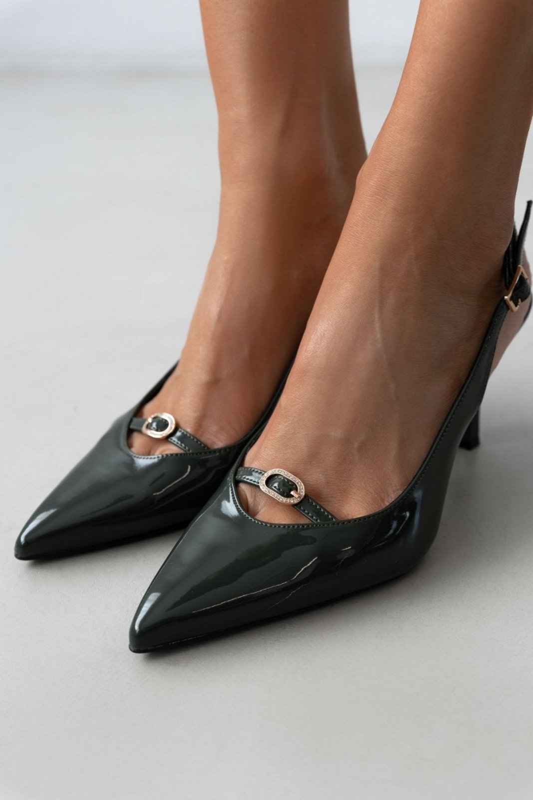 Γόβες μυτερές slingback λουστρίνι TFP - Κυπαρισσί