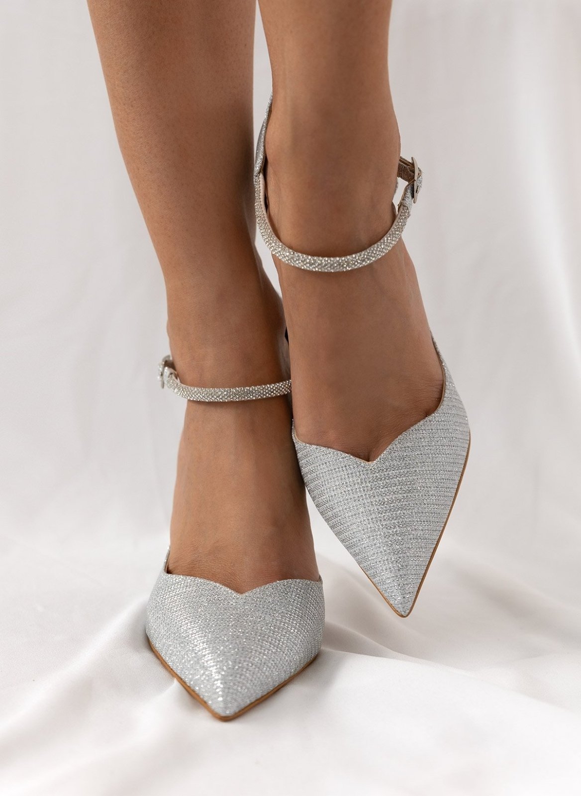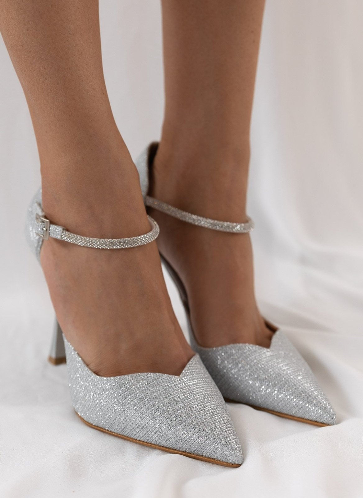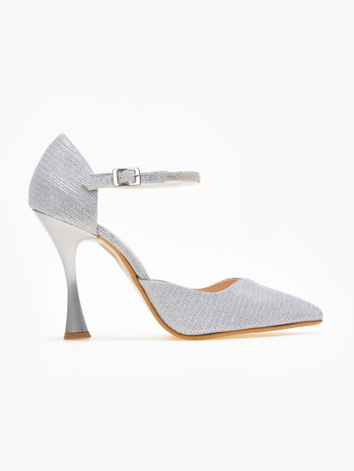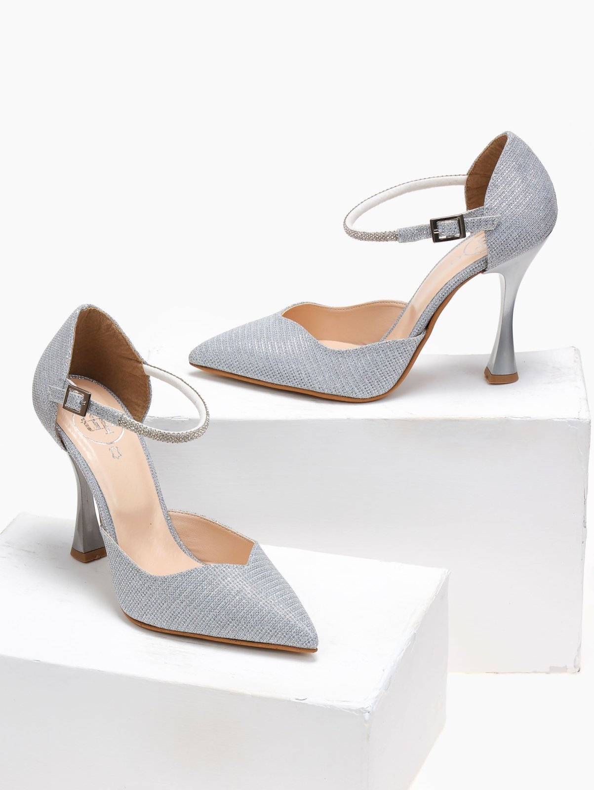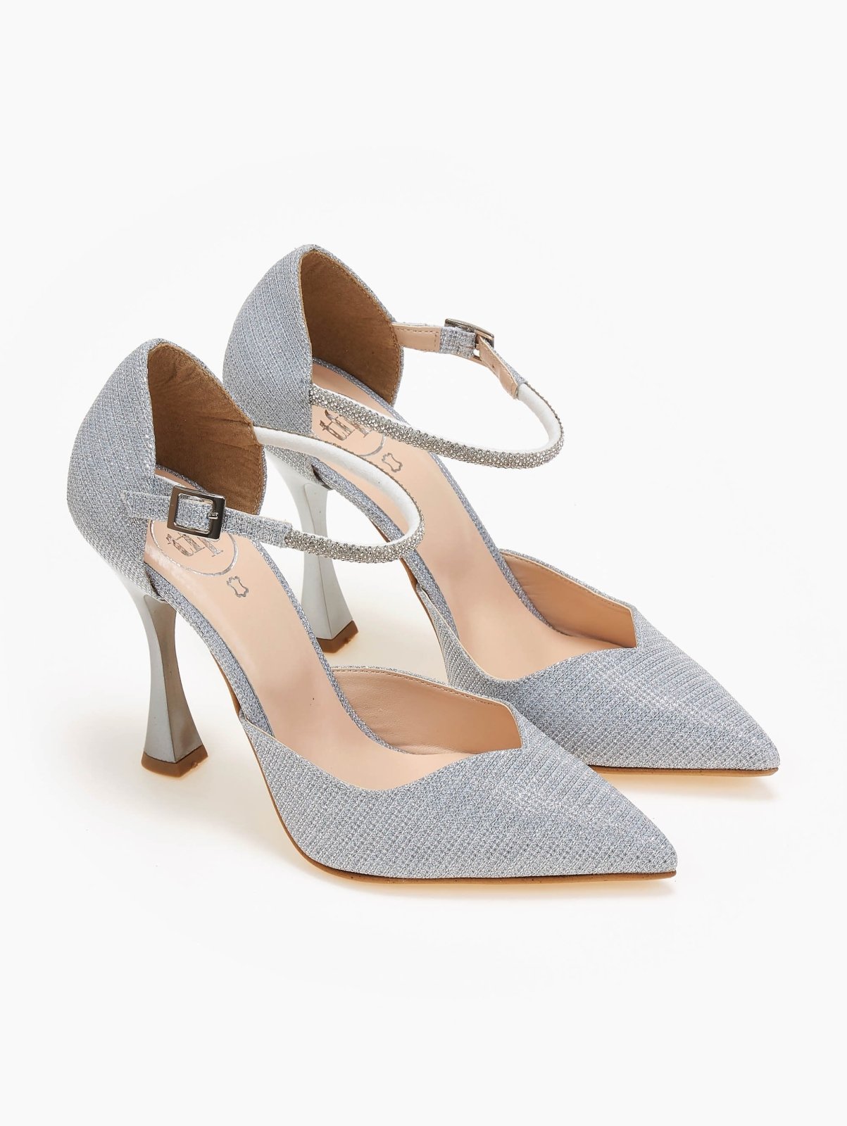 Γόβες μυτερές με στρας μπαρέτα TFP - Ασημί