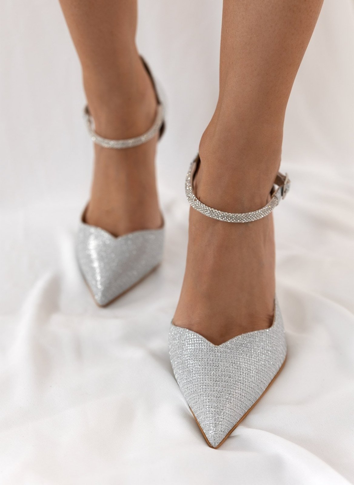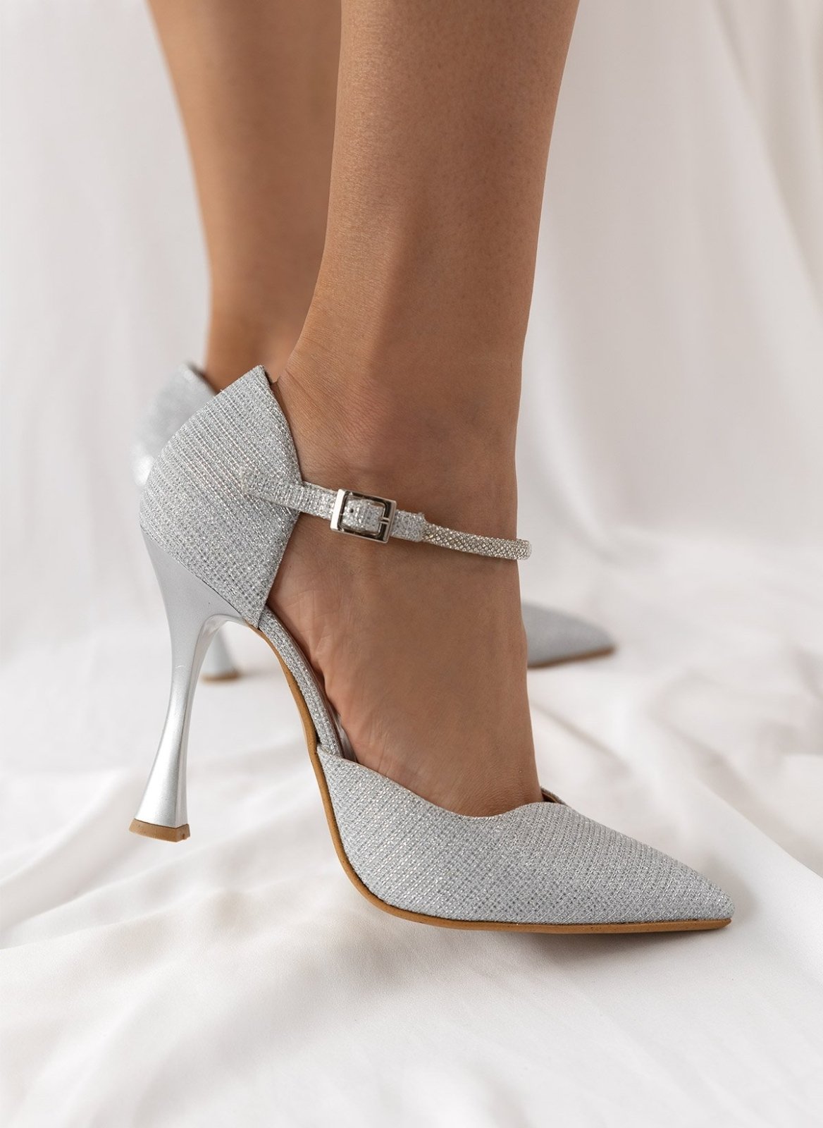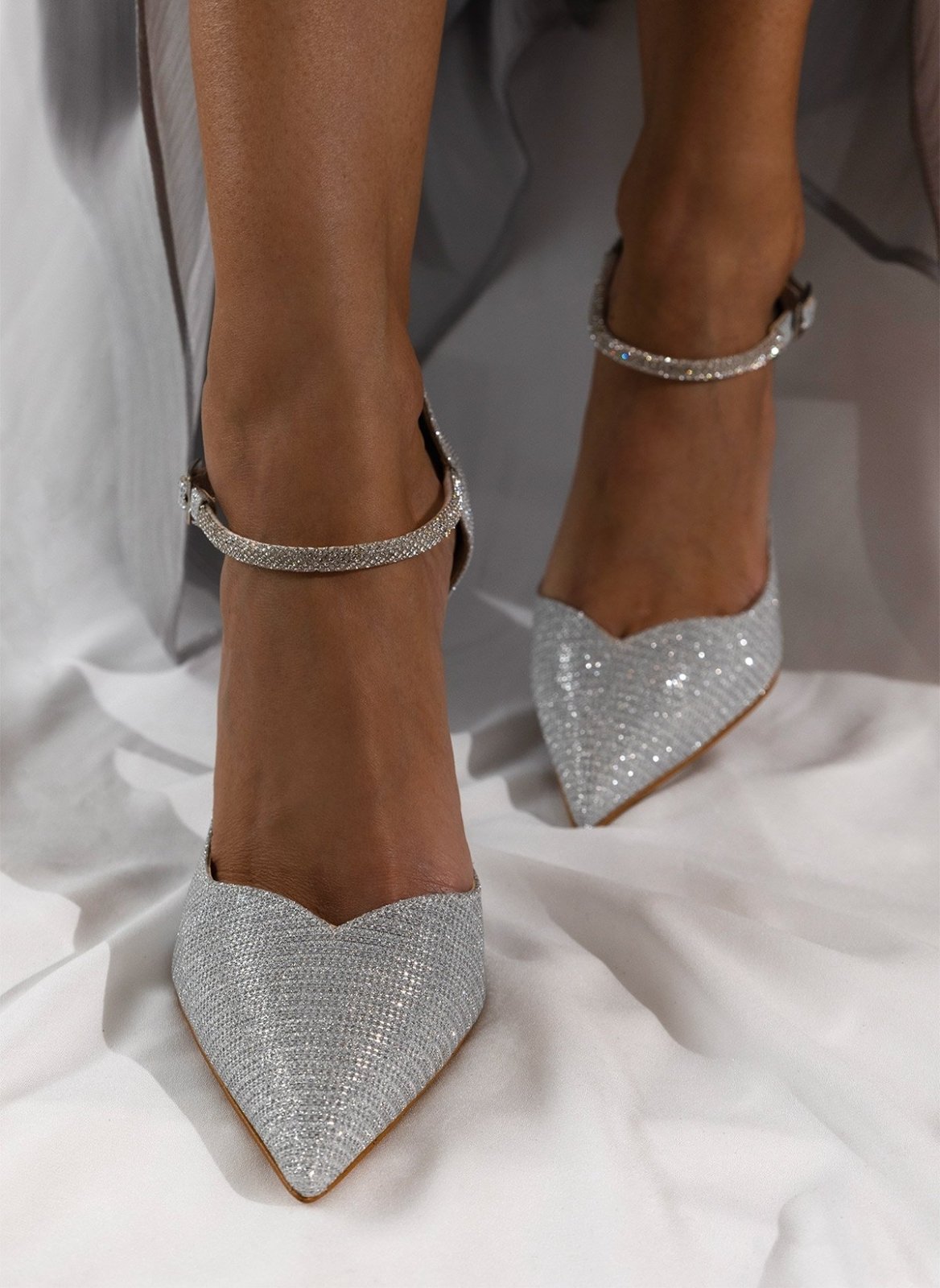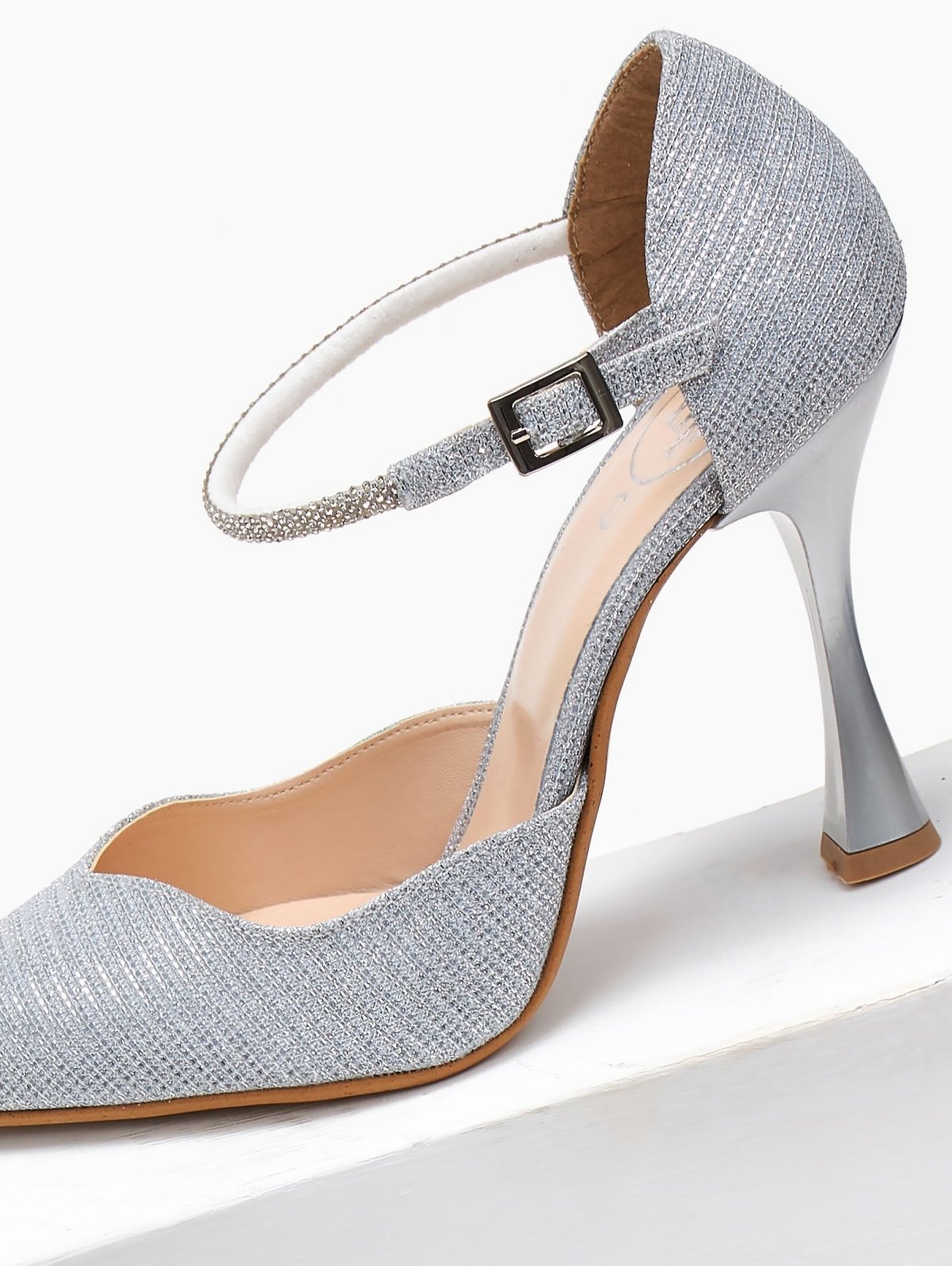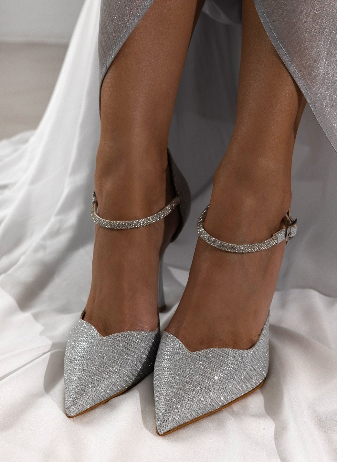 Γόβες μυτερές με στρας μπαρέτα TFP - Ασημί