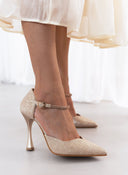 Γόβες μυτερές με στρας μπαρέτα TFP - Nude