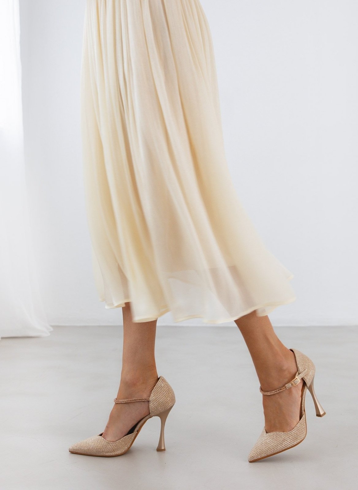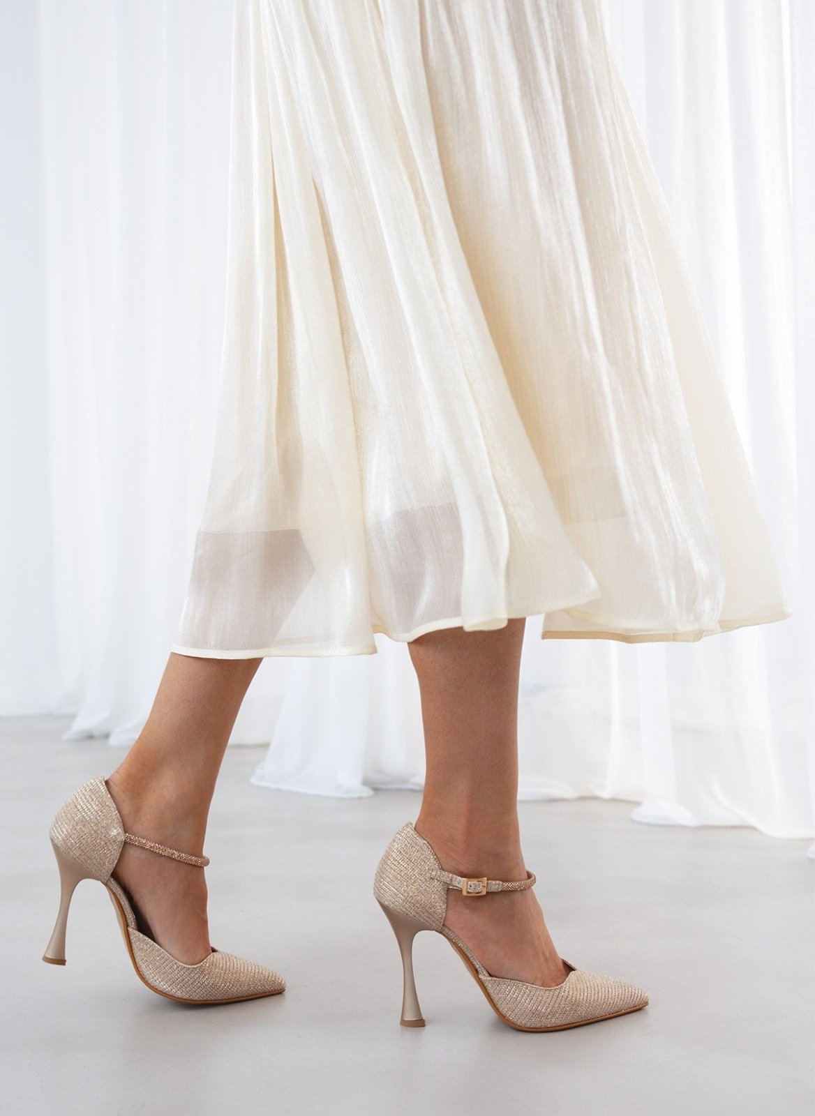Γόβες μυτερές με στρας μπαρέτα TFP - Nude