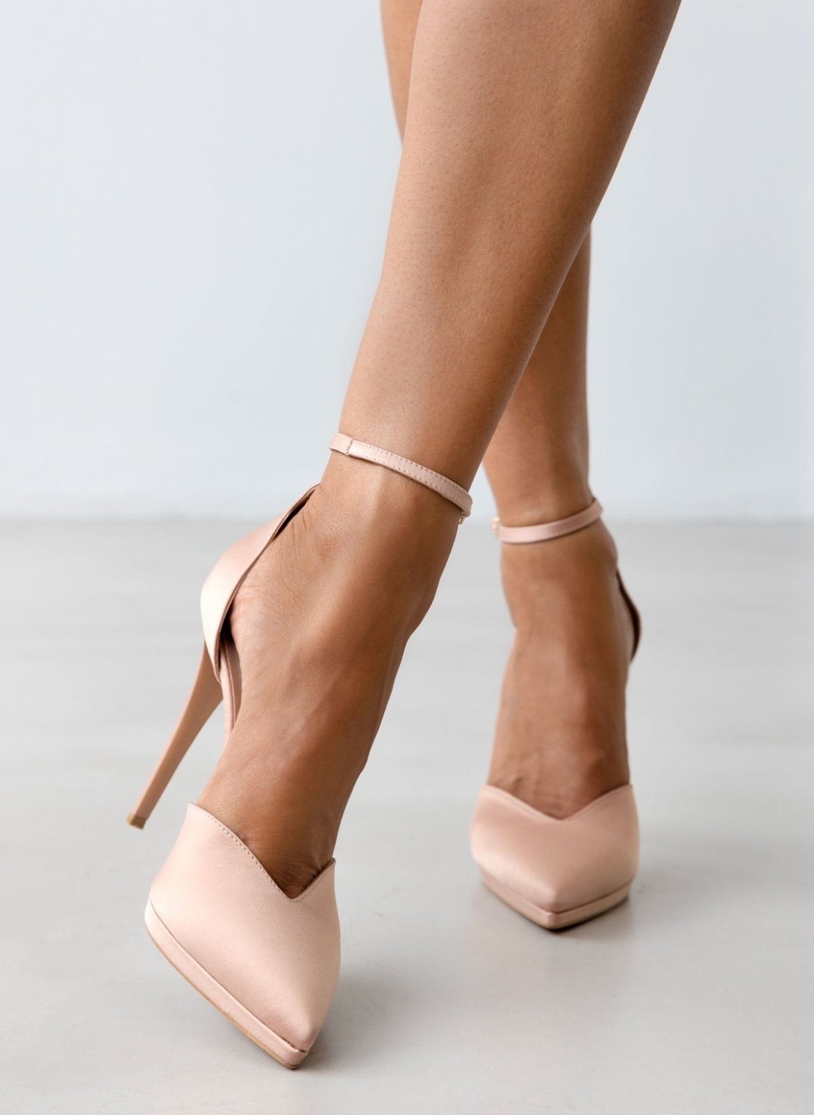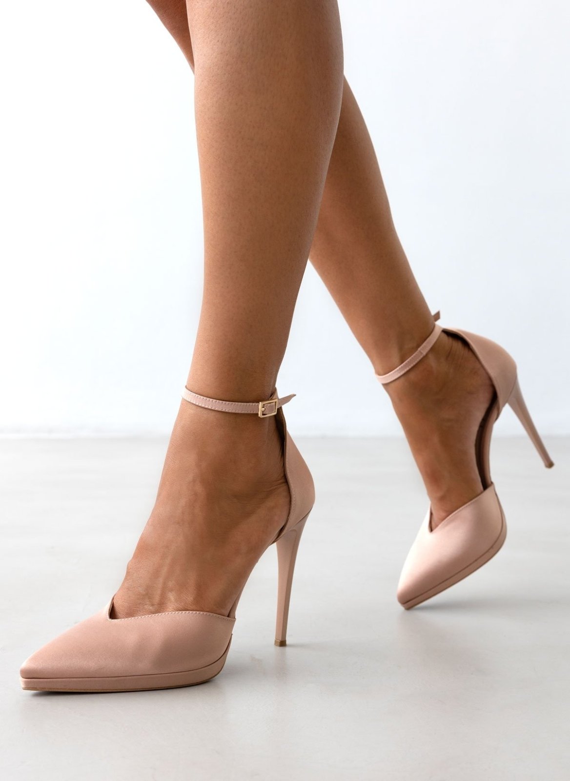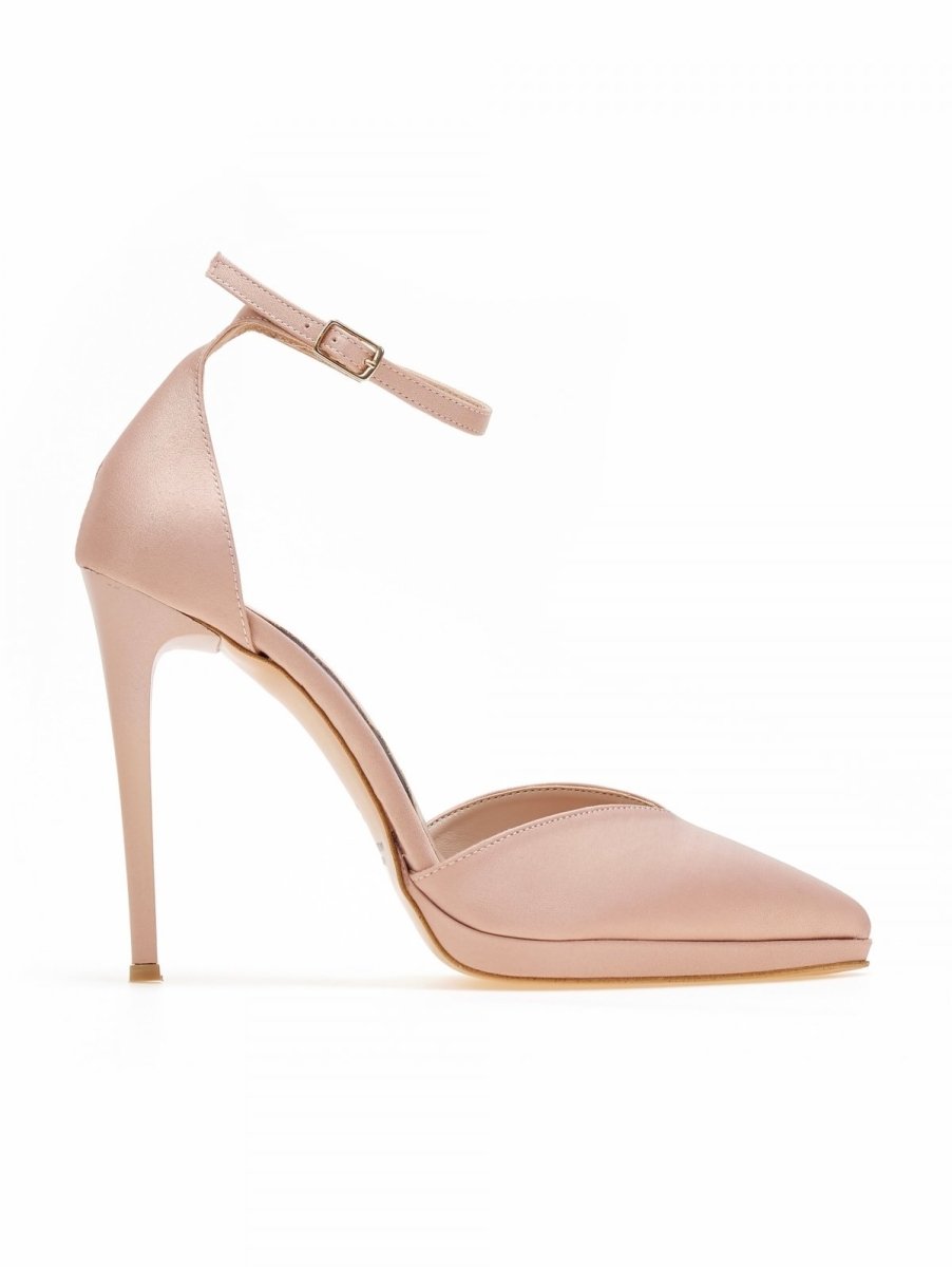 Γόβες σατέν μυτερές με λεπτή φιάπα TFP - Nude