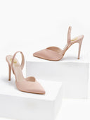 Γόβες σατέν μυτερές slingback TFP - Nude