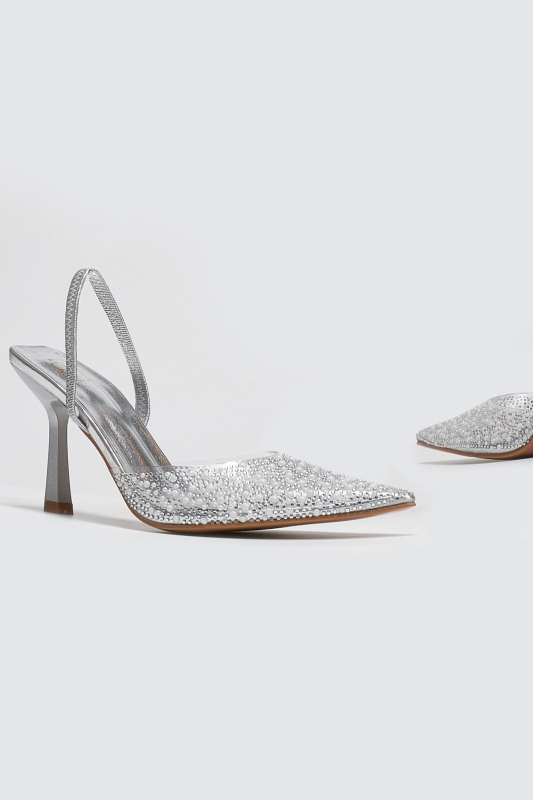Slingback μυτερές γόβες με διαφάνεια και στρας ERYNN. Λάστιχο στο κουτεπιέ. Λεπτό τακούνι.