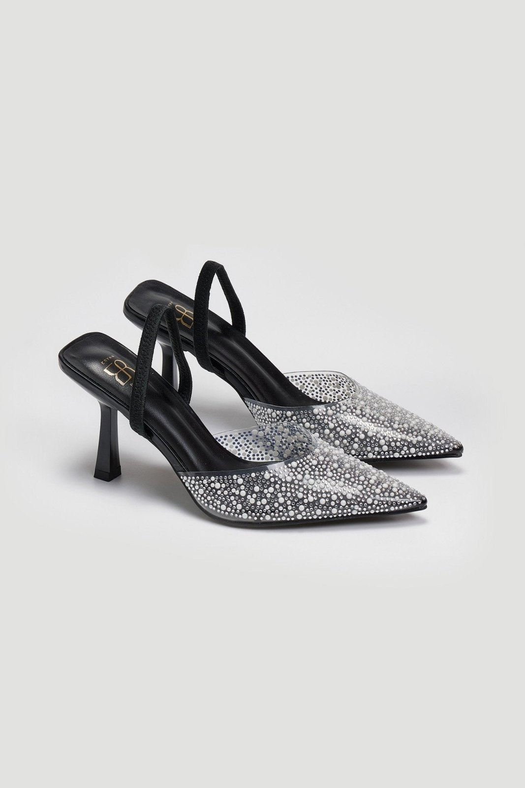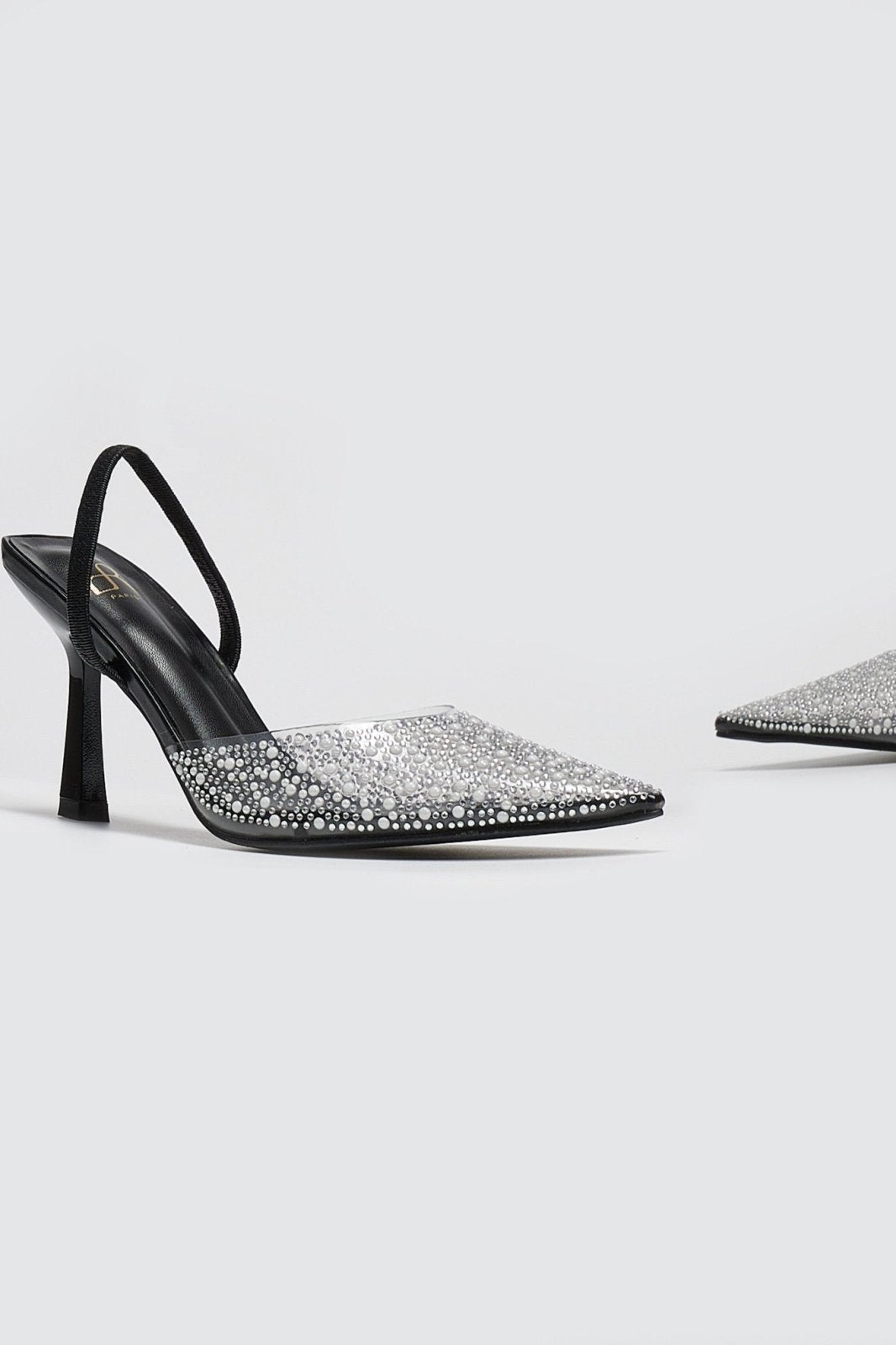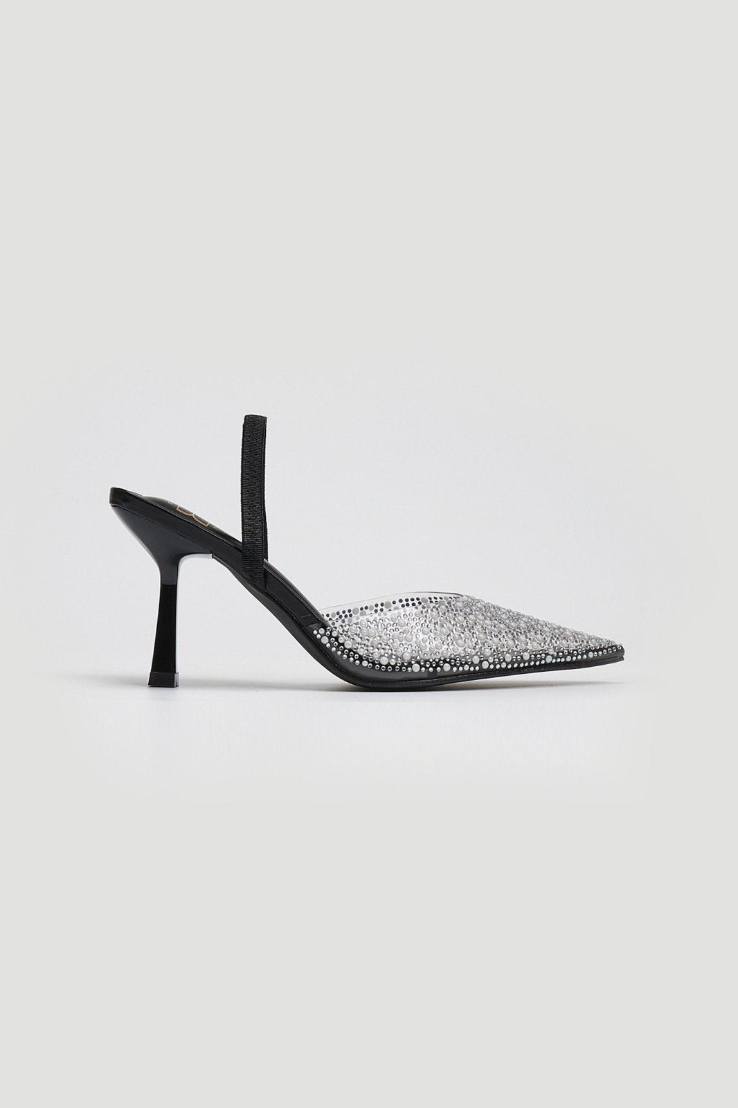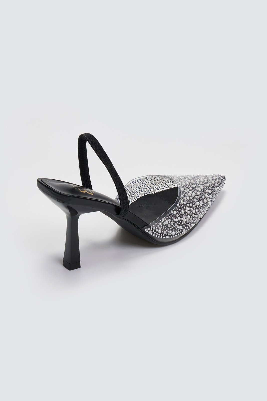 Slingback μυτερές γόβες με διαφάνεια και στρας ERYNN. Λάστιχο στο κουτεπιέ. Λεπτό τακούνι.