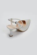Γόβες slingback μυτερές TFP. V cut άνοιγμα στα δάκτυλα. Δένουν στο πλάι με μικρό τοκά. Λεπτό τακούνι. Δερμάτινος πάτος. Ελληνικής κατασκευής.