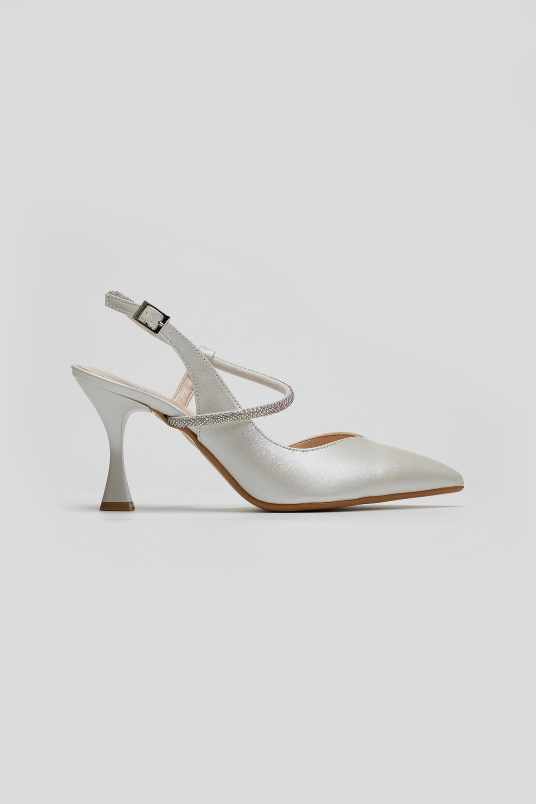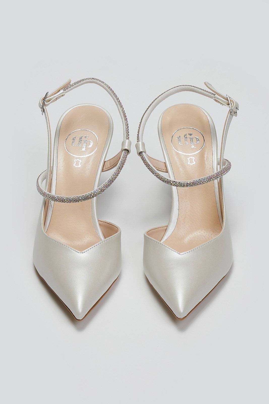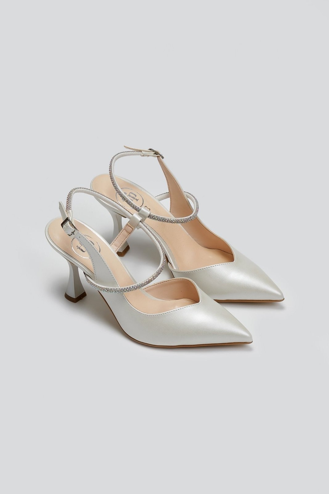 Γόβες slingback μυτερές με στρας TFP - Λευκό Πέρλα