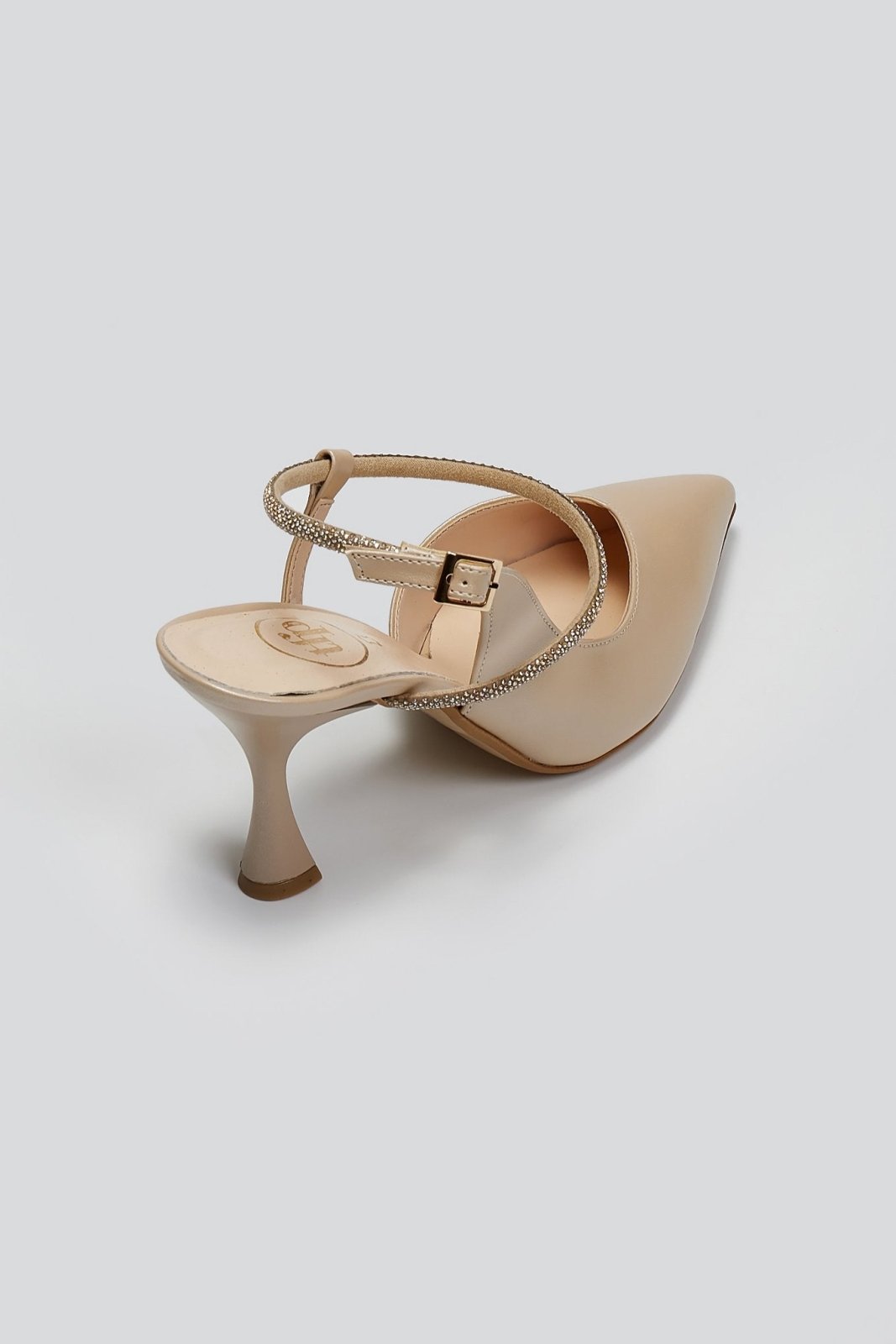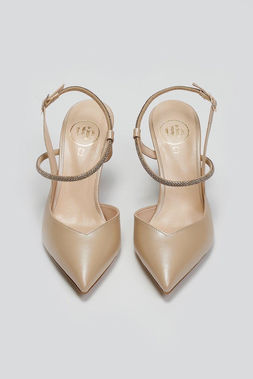 Γόβες slingback μυτερές με στρας TFP - Μπεζ Πέρλα