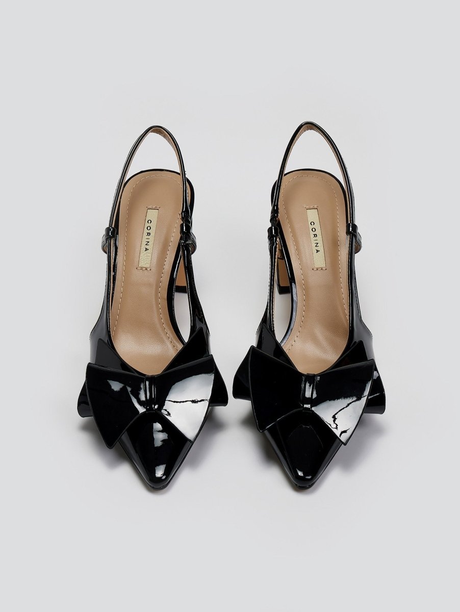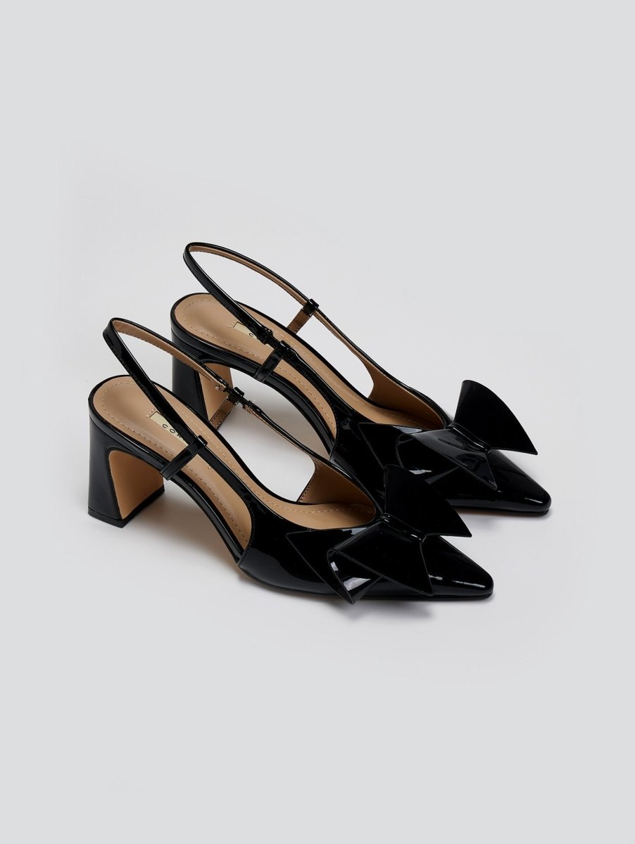 Γόβες slingbag λουστρίνι με φιόγκο CORINA - Μαύρο