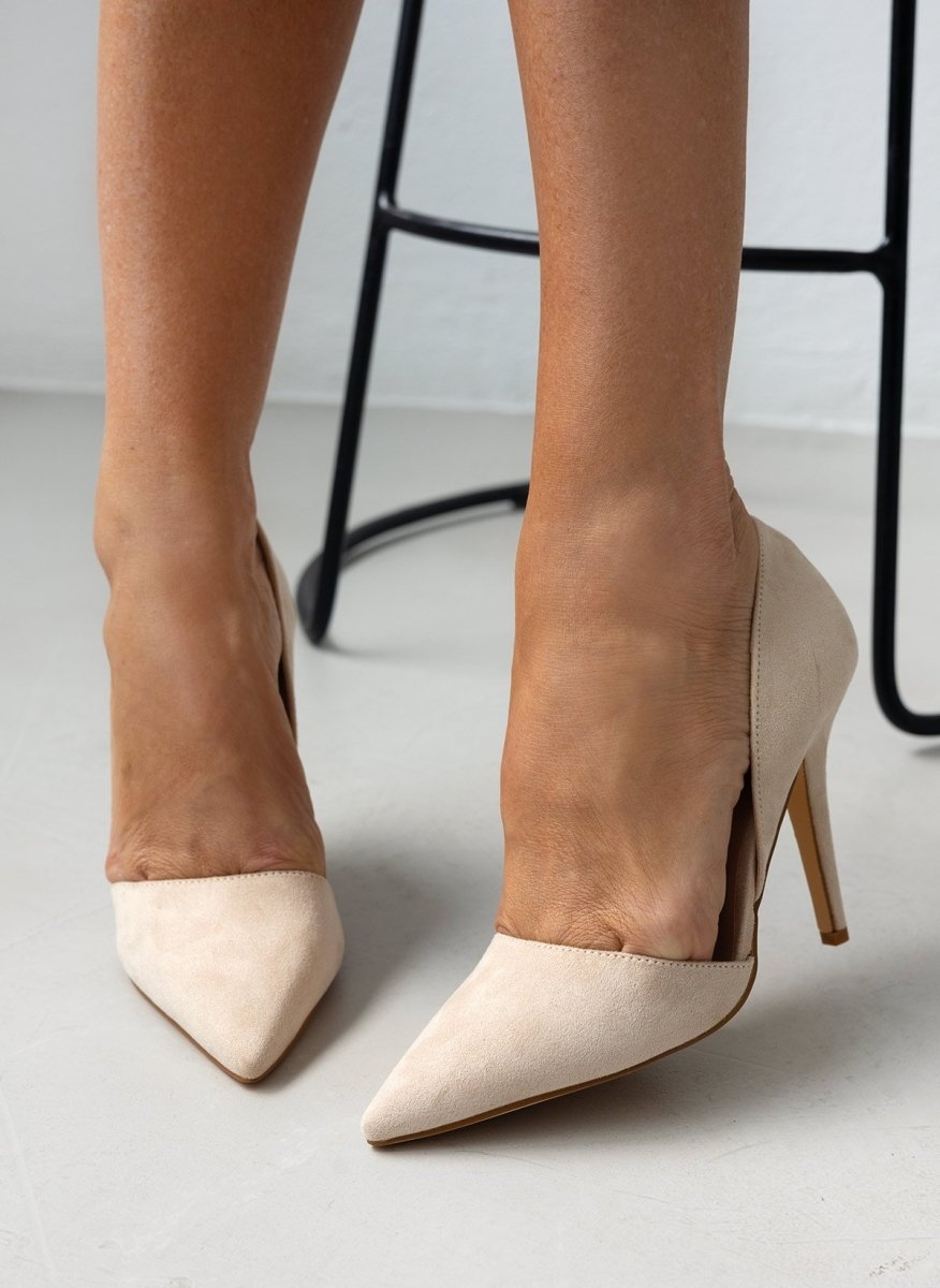 Γόβες suede μυτερές με άνοιγμα - Μπεζ