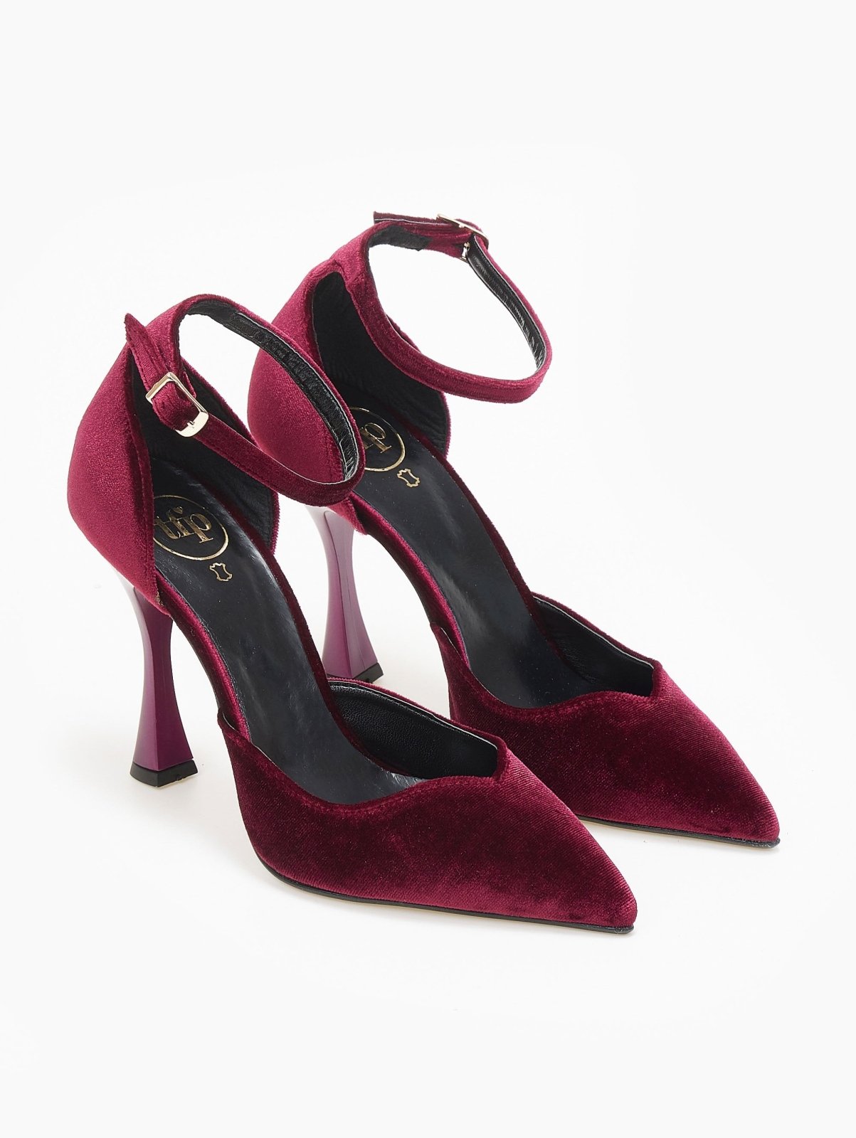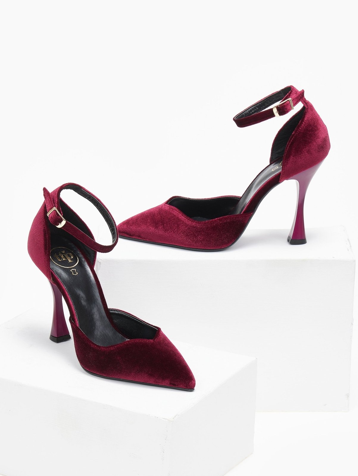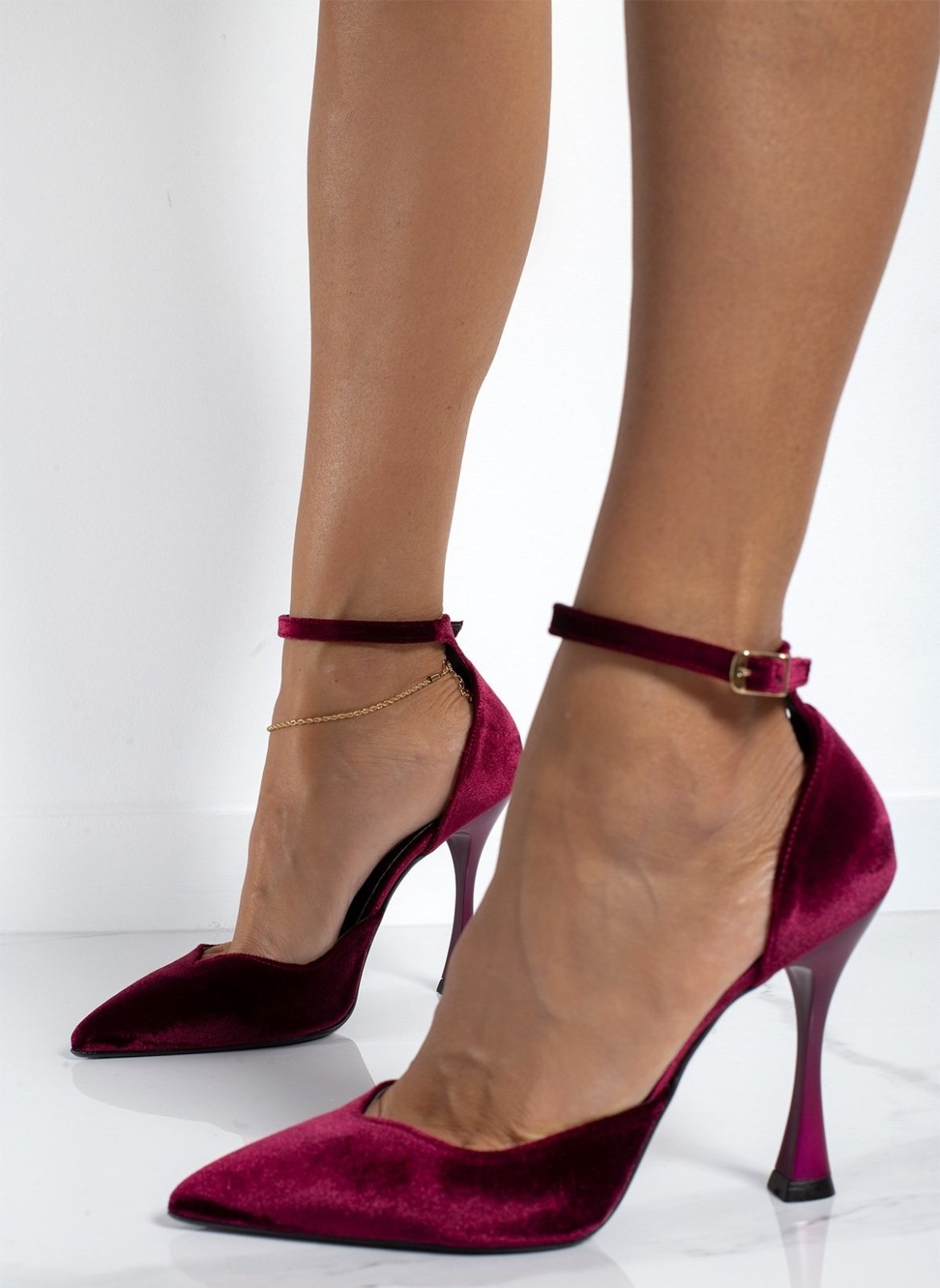 Γόβες velvet με μπαρέτα TFP - Μπορντό
