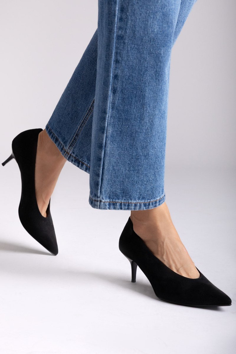 Pointed toe suede kitten heel pumps with a sleek silhouette and cushioned insole. Lightweight support and refined elegance crafted for modern women.