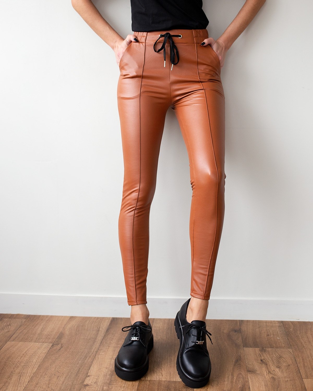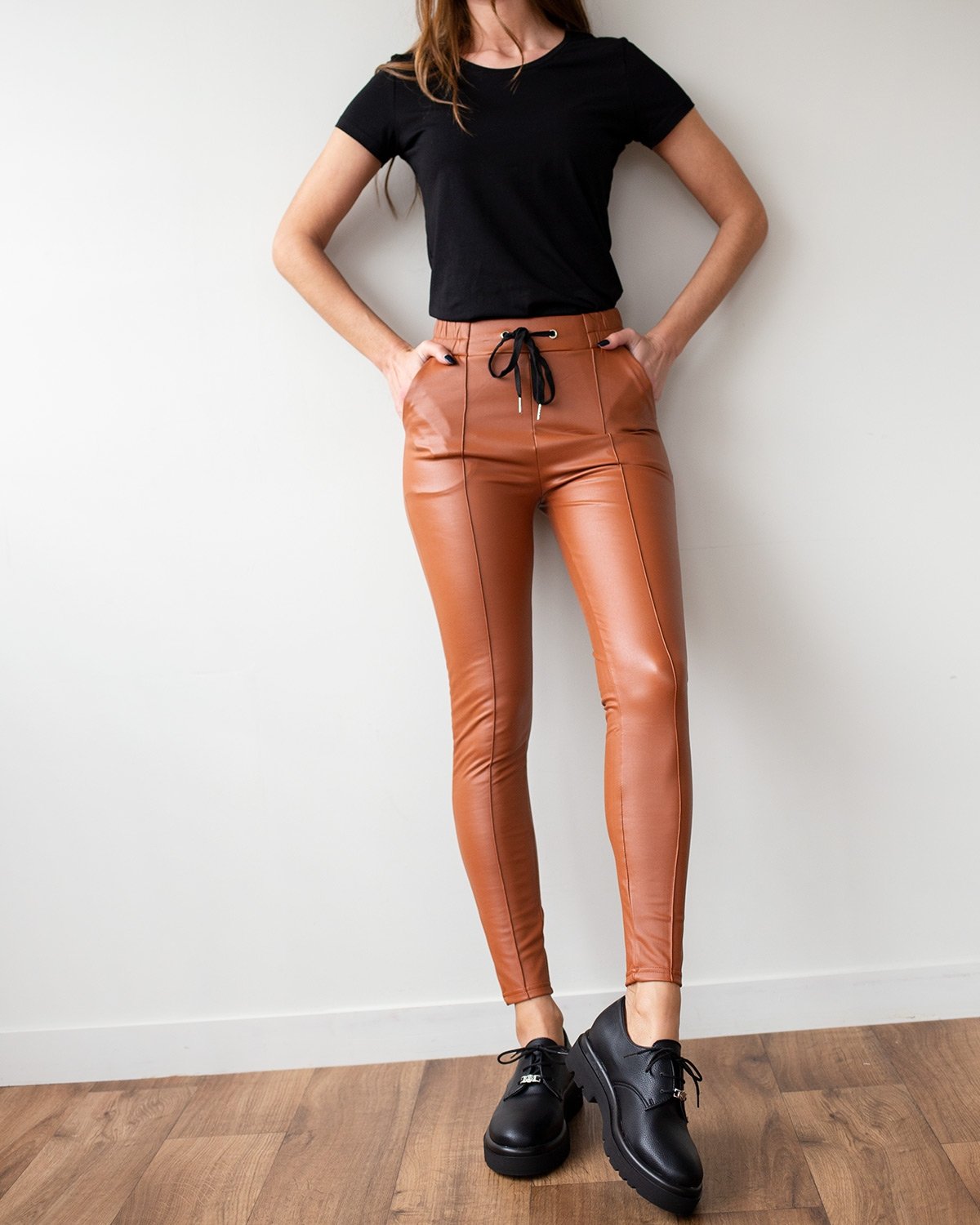 Κολάν δερματίνη με κάθετη ραφή - Κάμελ