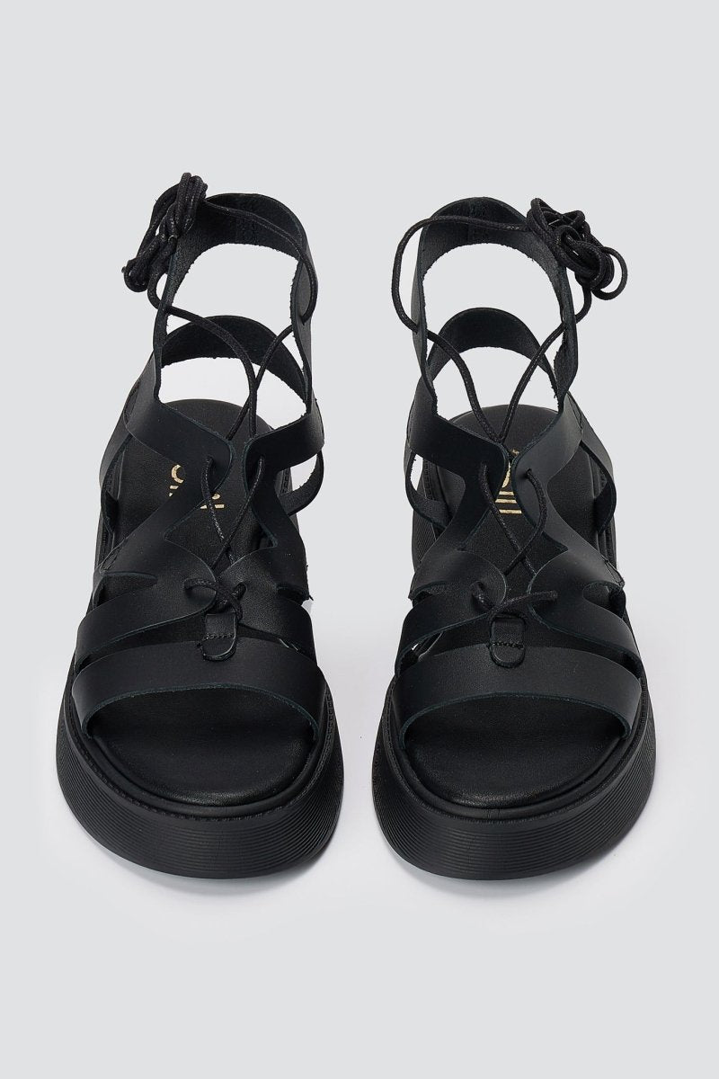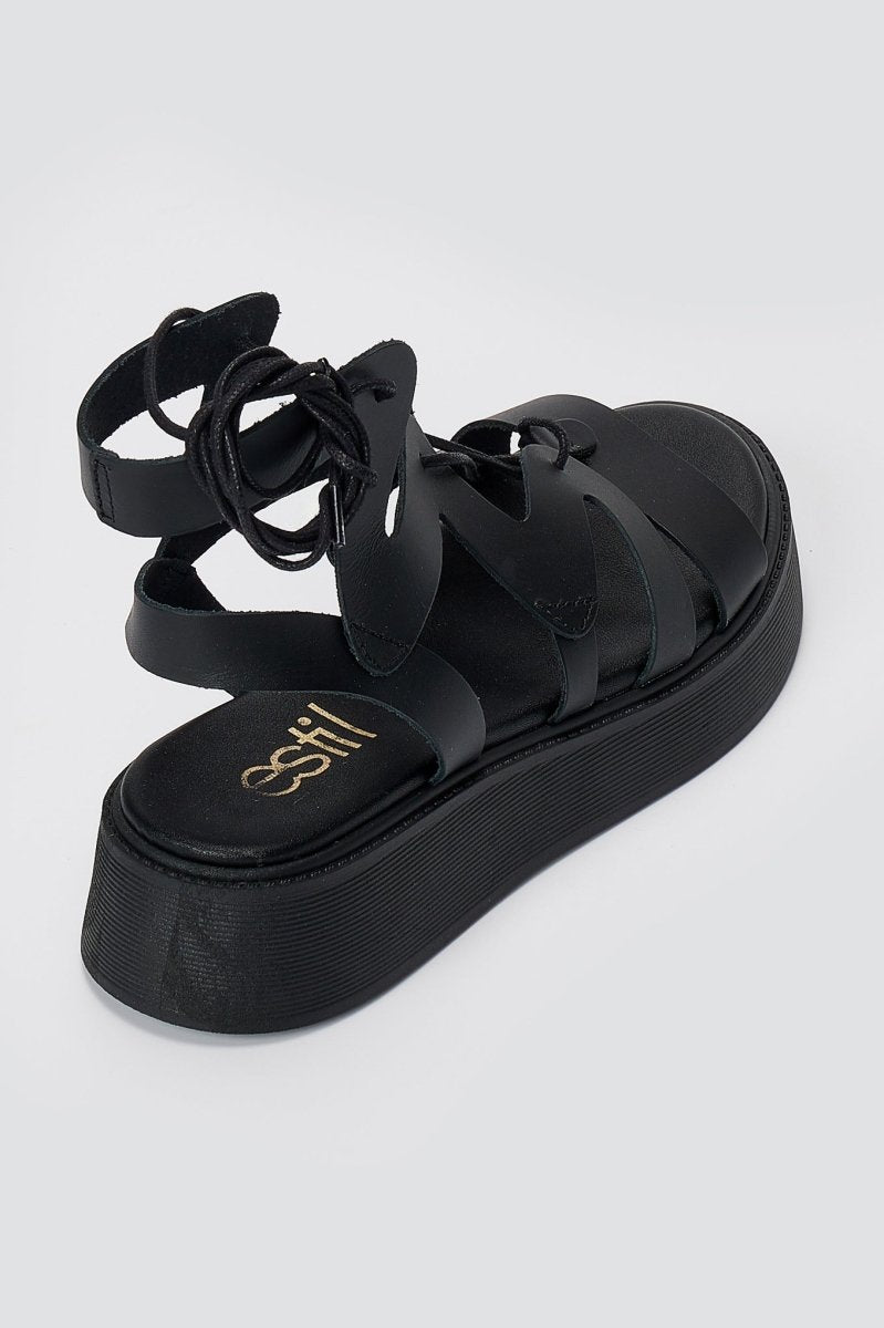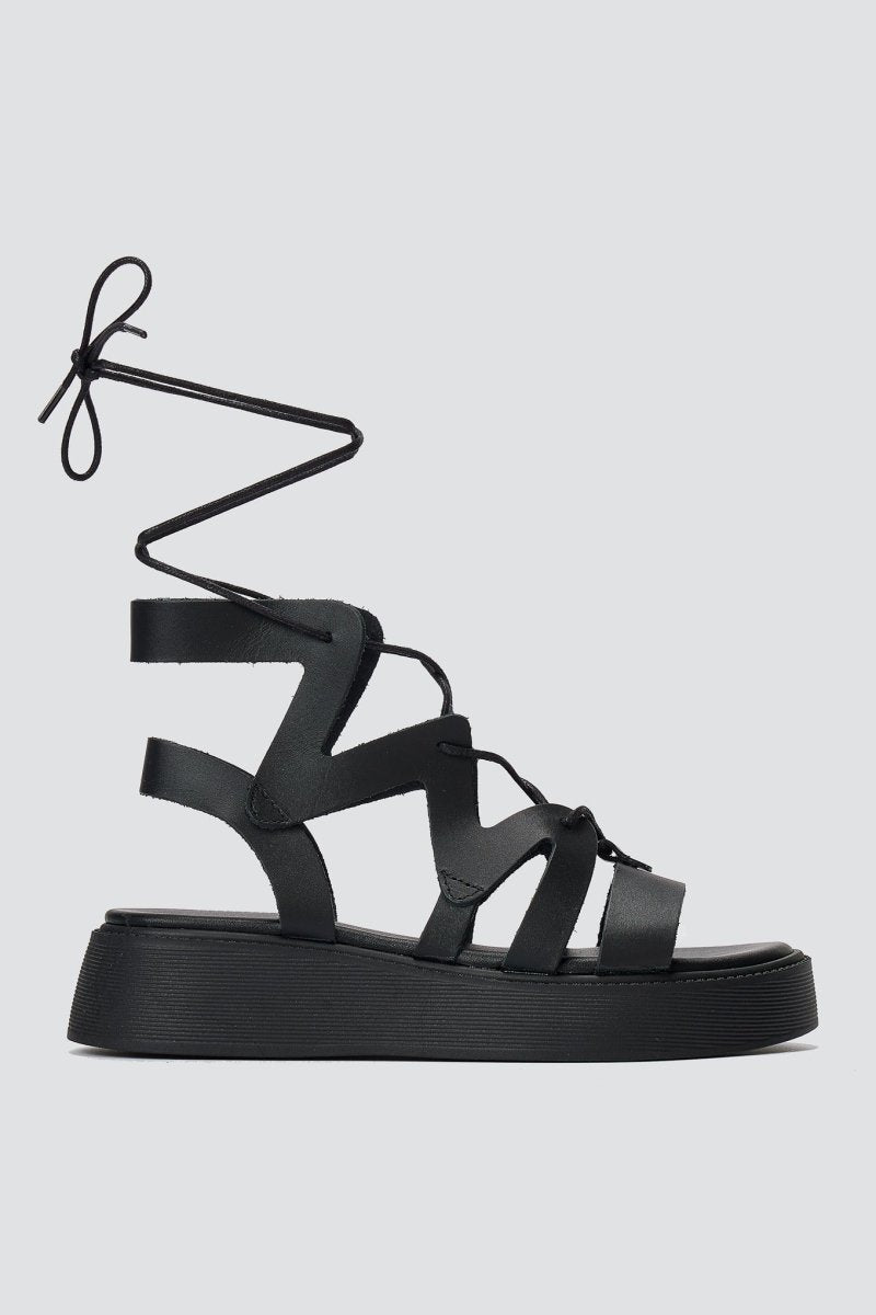 Lace Up Platform Sandals - Black Matte