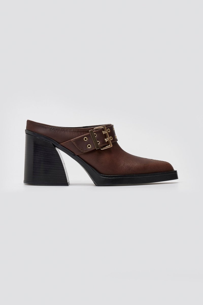Leather Clogs with Buckle TFP - Dark Brown Matte